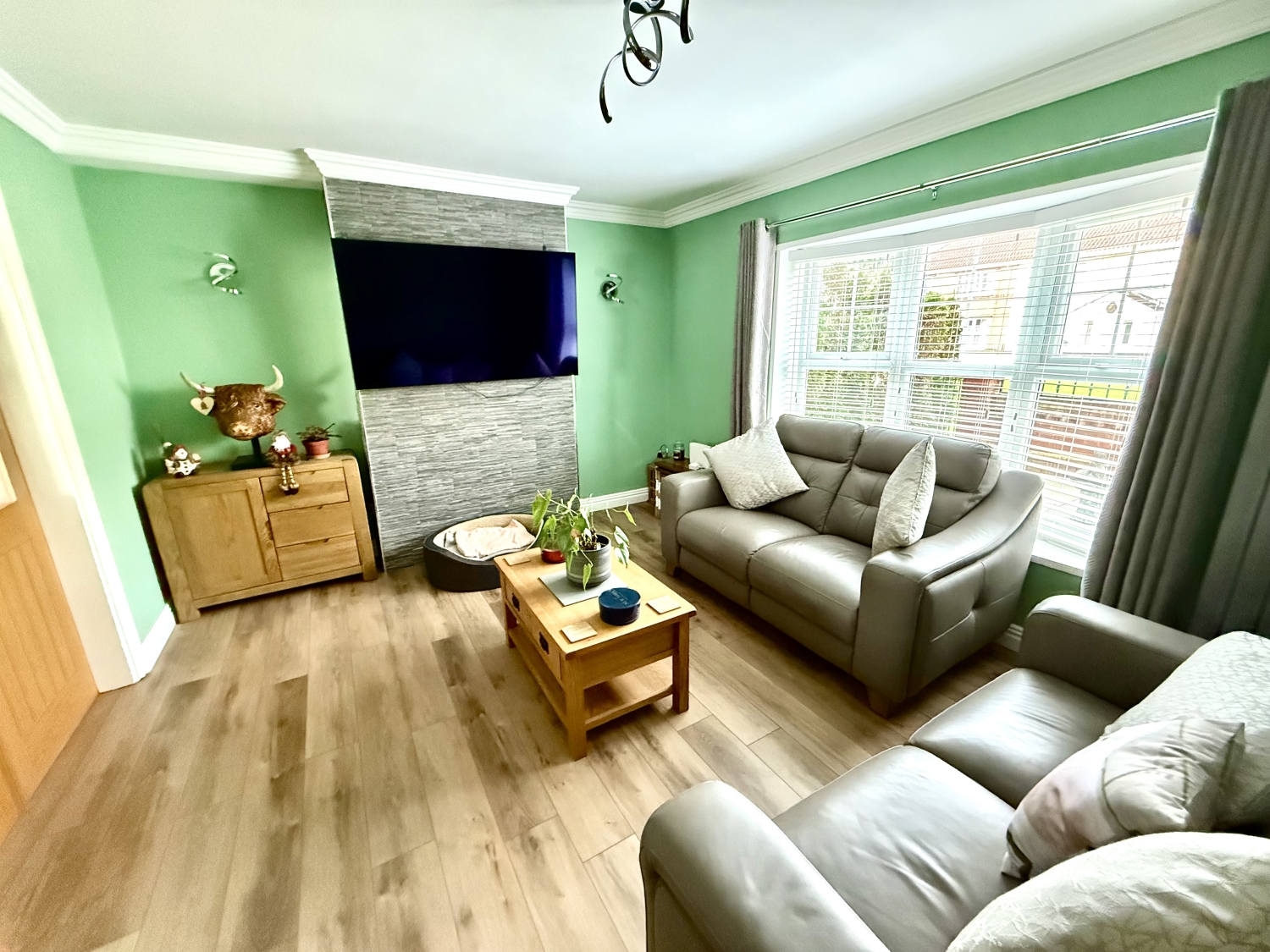 Double glazed UPVC window to the front, tiled chimney breast, mounted television point, laminate flooring and coved ceiling.