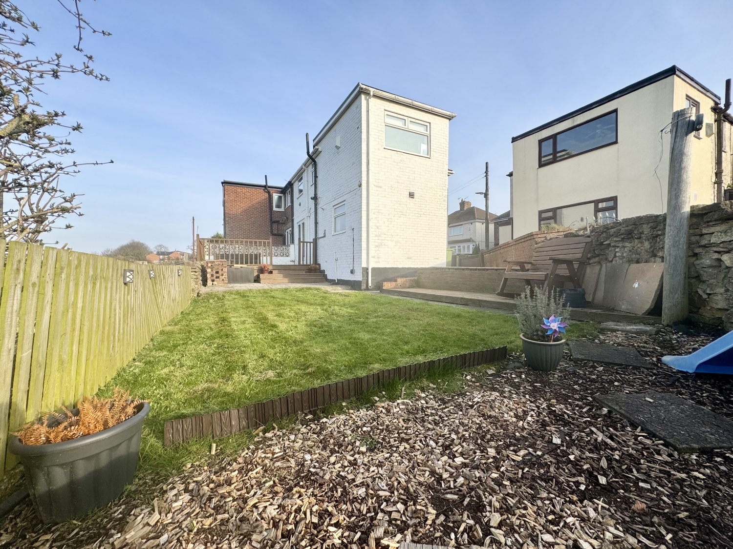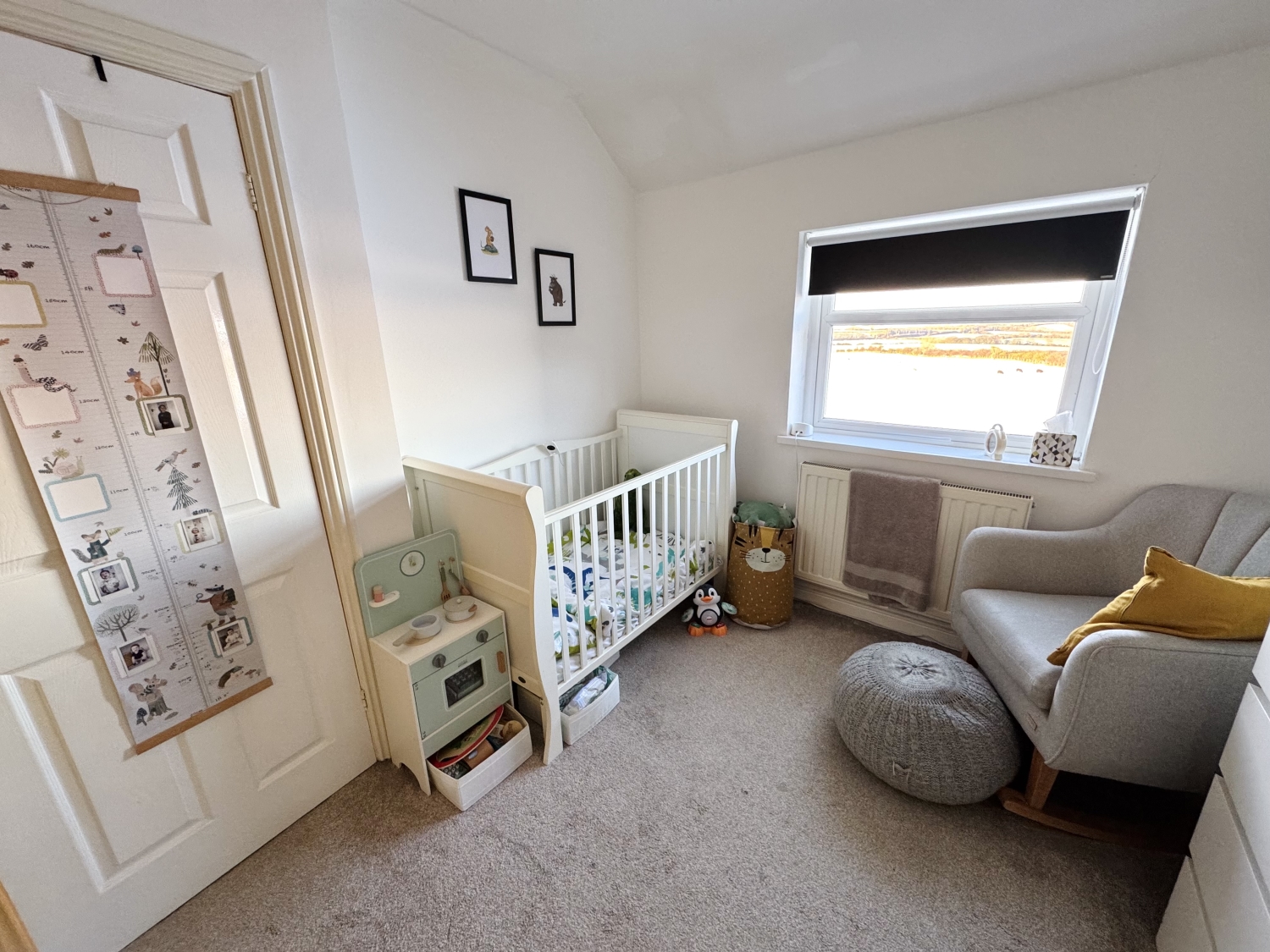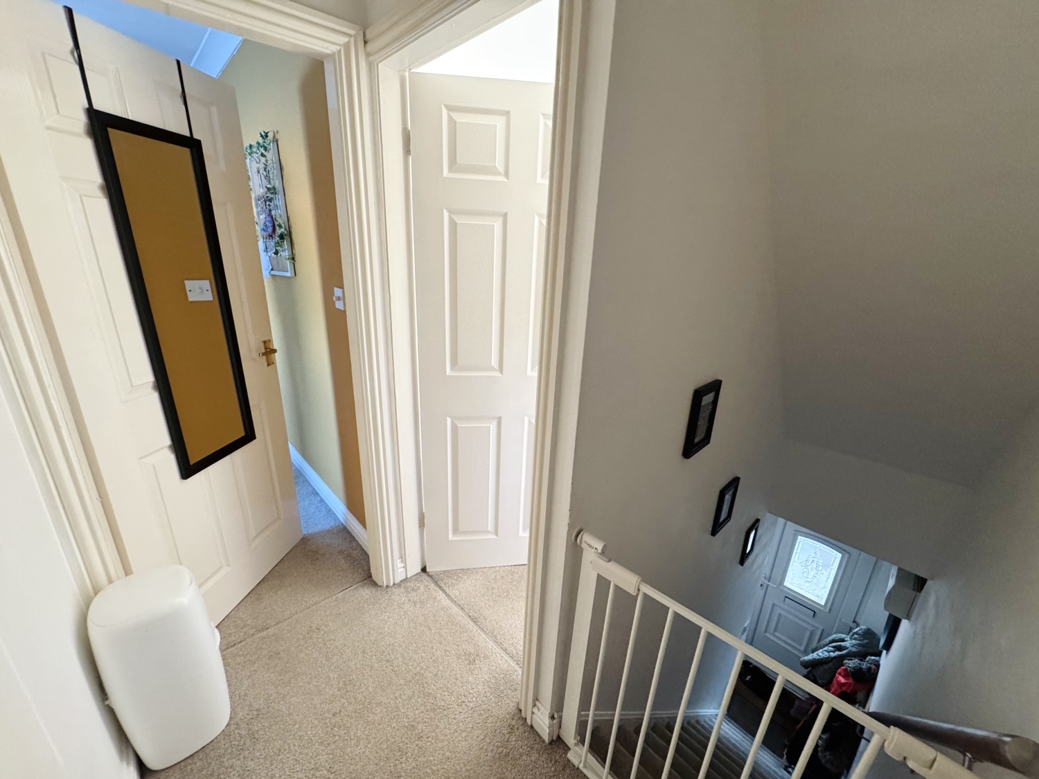 Upstairs, the landing leads to three well‑proportioned bedrooms, each offering comfortable accommodation and flexibility for family life, guests or home working. The bathroom serves the bedrooms and is fitted with a clean, modern suite.