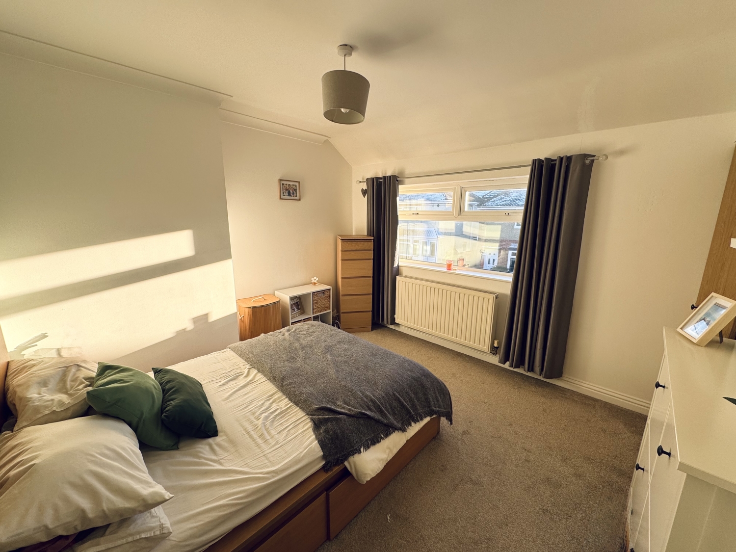 The recently fitted Wren kitchen is a standout feature of the home, thoughtfully designed with integrated appliances, a fridge/freezer and a stylish Belfast sink. Its modern finish and practical layout make it a pleasure for anyone who enjoys cooking or hosting.