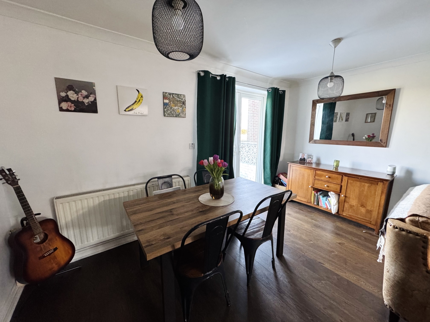 Patio doors to the rear garden, radiator, engineered wood flooring