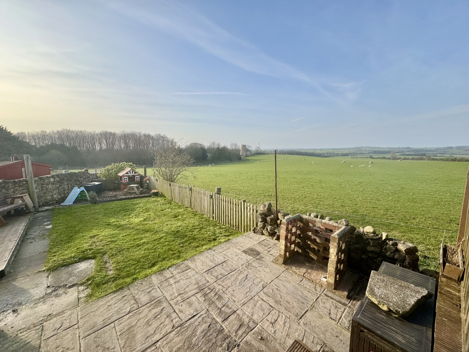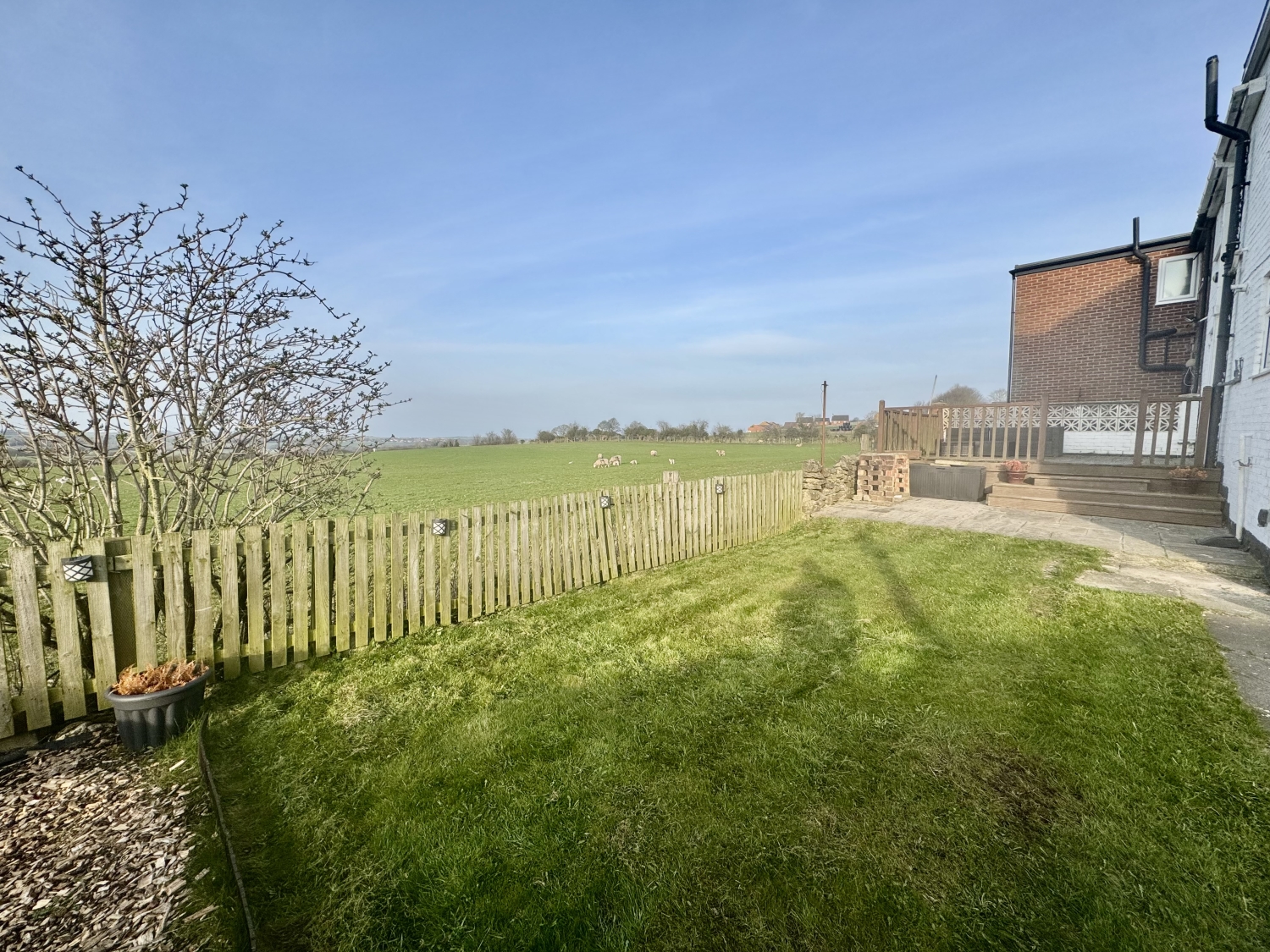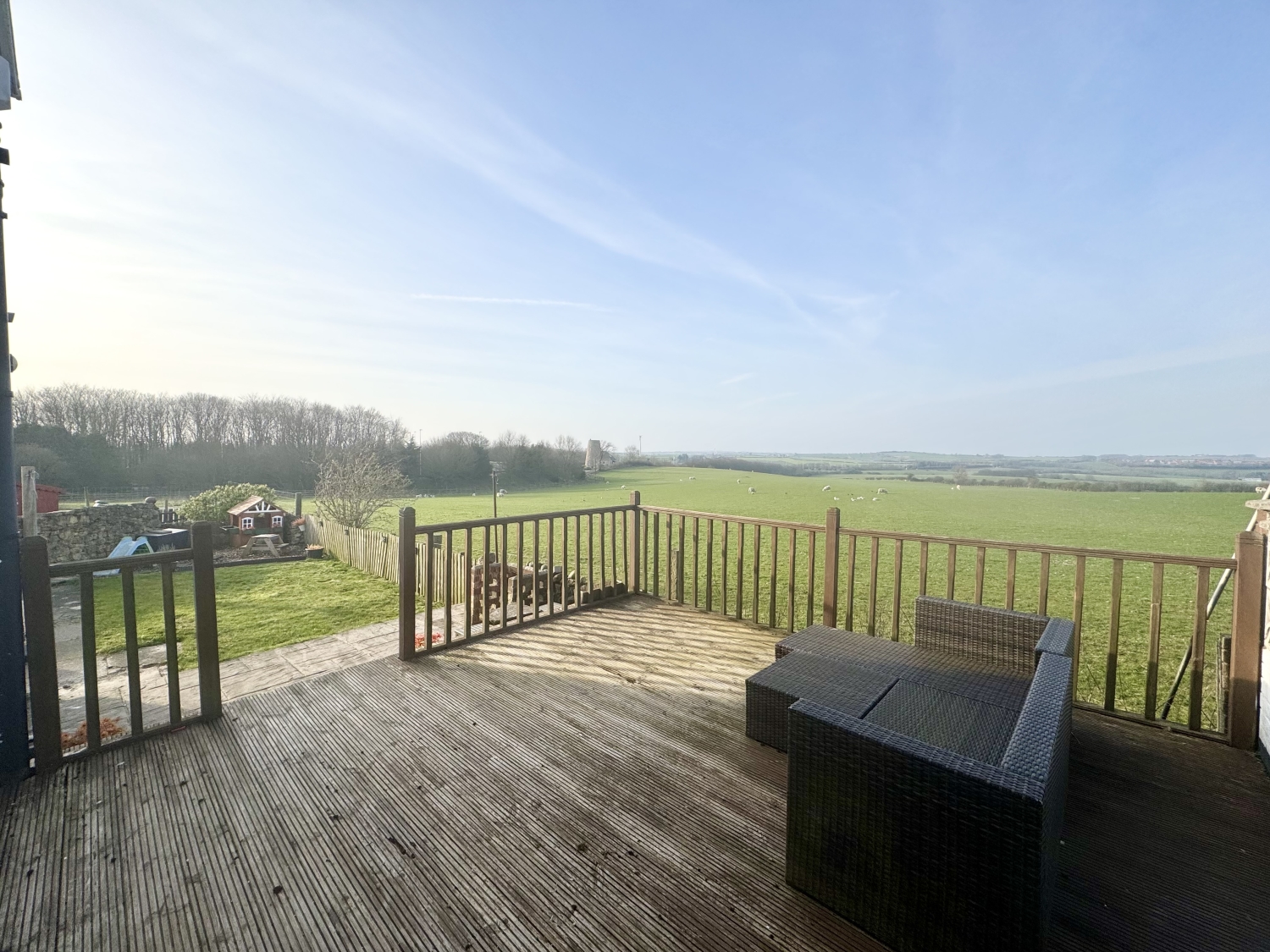 The rear garden is a true highlight, offering a peaceful and private outdoor space with a laid‑to‑lawn area, a decked section perfect for seating, and a patio that enjoys open views across fields with glimpses of the sea beyond. It's an ideal setting for relaxing, dining outdoors or simply enjoying the scenery.