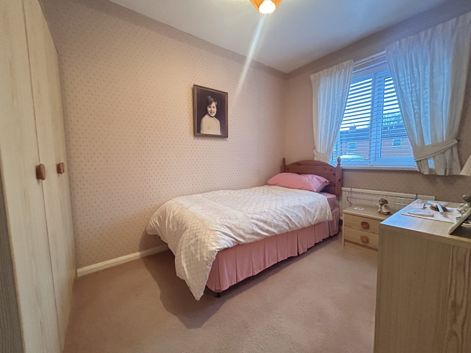 Externally, the property enjoys a pleasant open-plan lawn garden to the front with a pathway leading to the entrance. To the rear is a fence-enclosed paved patio garden with gated access, offering the potential for off-road parking if required.