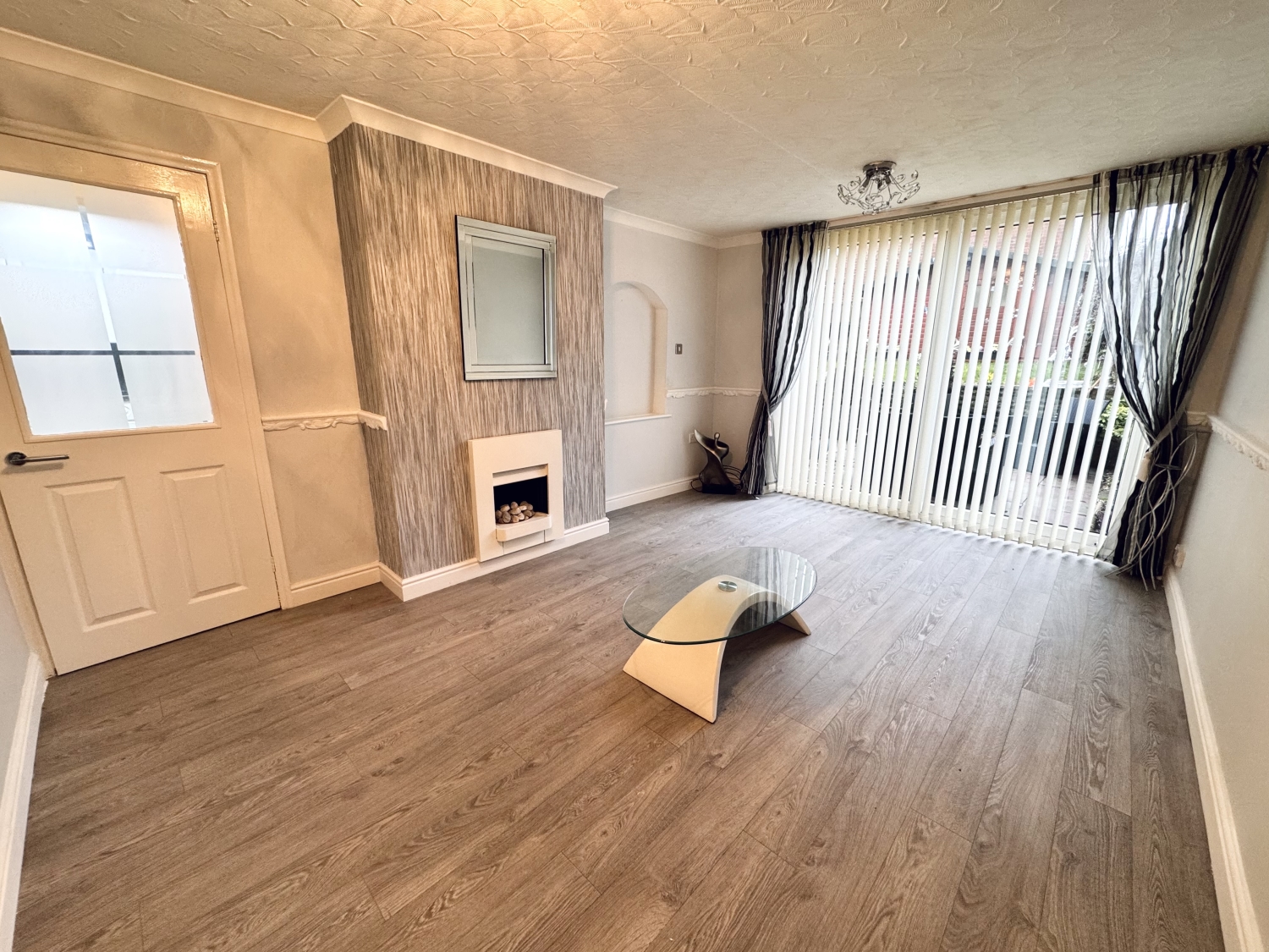 The ground floor layout is both practical and inviting. A bright 14ft living room sits to the rear of the property and benefits from sliding doors that open directly onto the garden, allowing natural light to pour in and creating an easy connection between indoor and outdoor living. The 17ft kitchen and dining room provides plenty of room for cooking, dining, and entertaining, with ample space for appliances and a dining table. From here, a rear hall leads to a UPVC door opening out to the garden.