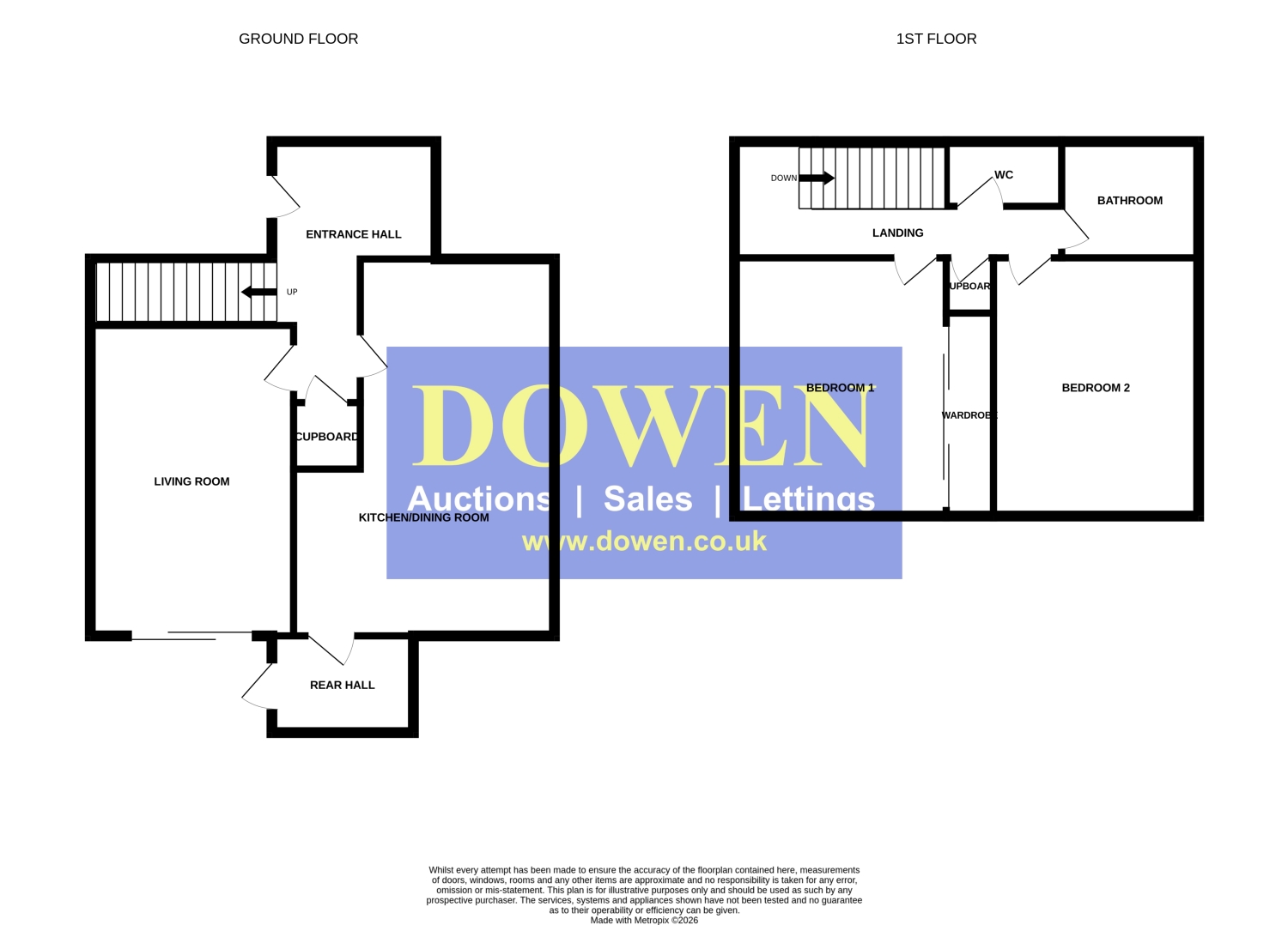 Upstairs, the landing includes another handy storage cupboard and gives access to two well‑proportioned double bedrooms, each offering comfortable space for furnishings. The bathroom and separate WC add convenience and flexibility to the layout.