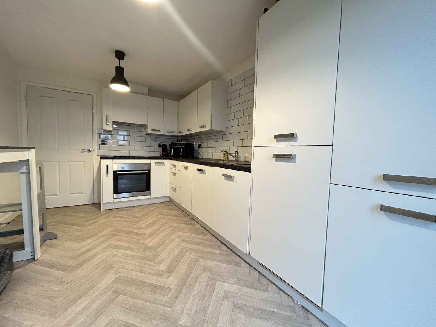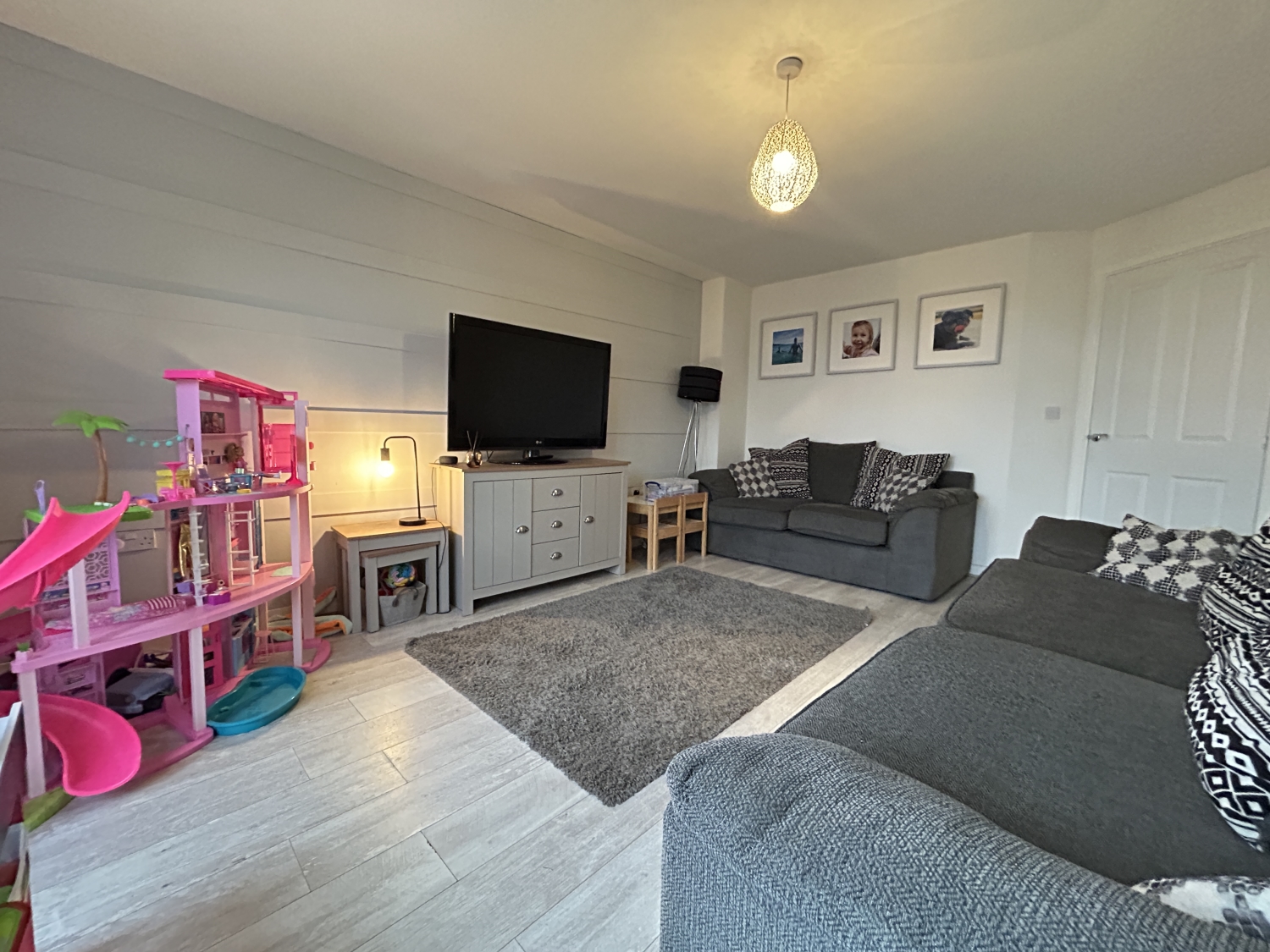 To the first floor, a pleasant landing with built‑in storage and loft accesshatch leads to four well‑proportioned double bedrooms. The master bedroom enjoys its own ensuite shower room, and the remaining bedrooms are served by a modern family bathroom with shower over the bath. Each bedroom benefits from excellent natural light and has been tastefully finished, creating a warm and inviting atmosphere throughout.
