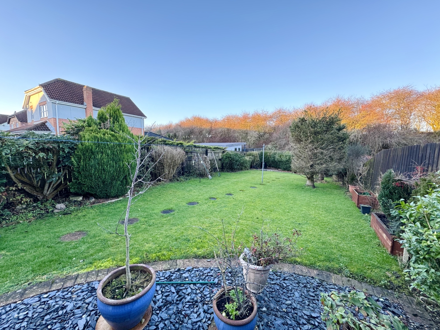 Externally, the rear garden is a standout feature, offering a private and not‑overlooked outdoor retreat. The space is laid mainly to lawn and complemented by patio areas and a slate section, creating a variety of zones for outdoor dining, relaxation or gardening. The peaceful setting and level of privacy make it an ideal garden for those who enjoy spending time outdoors.