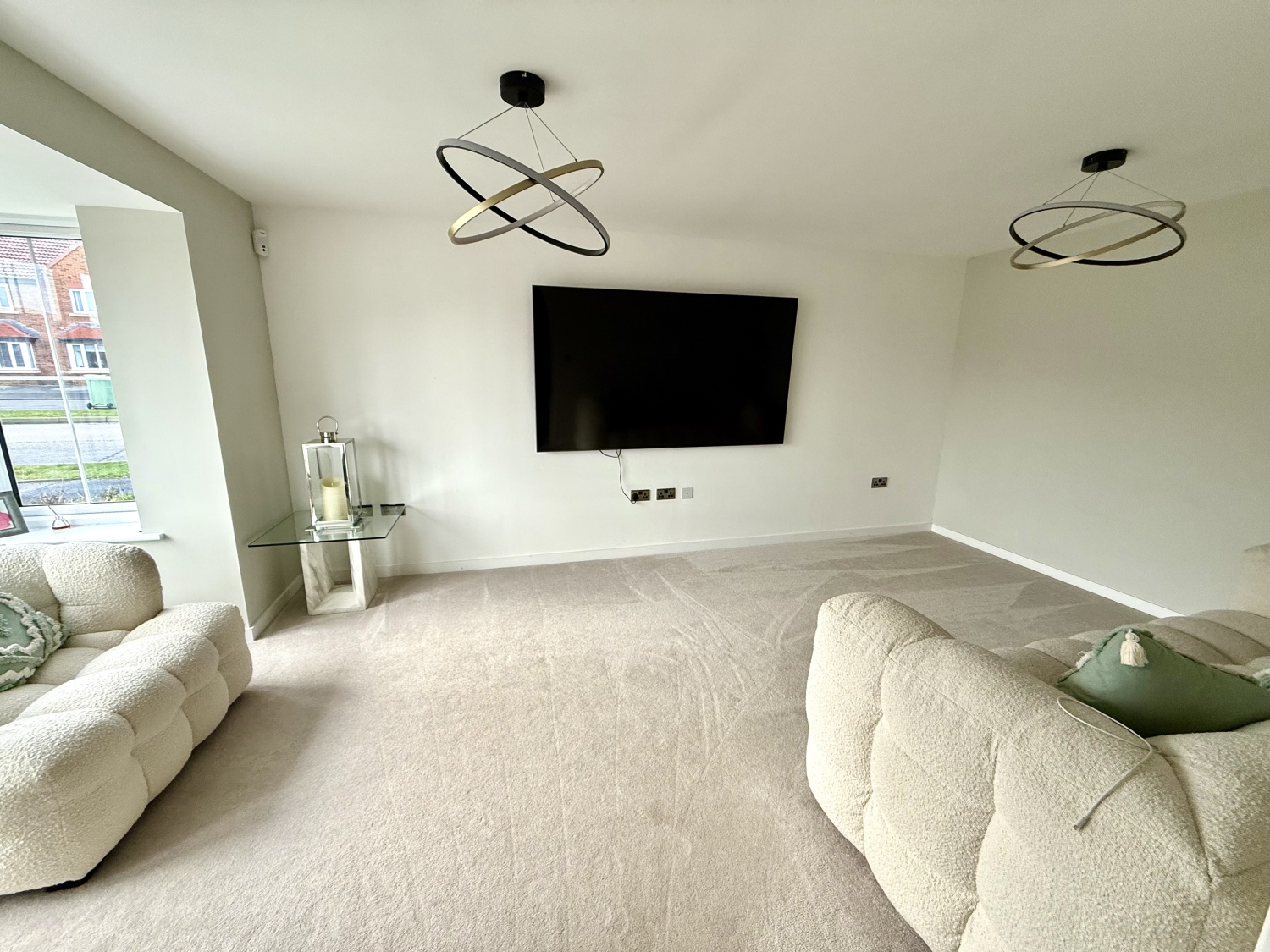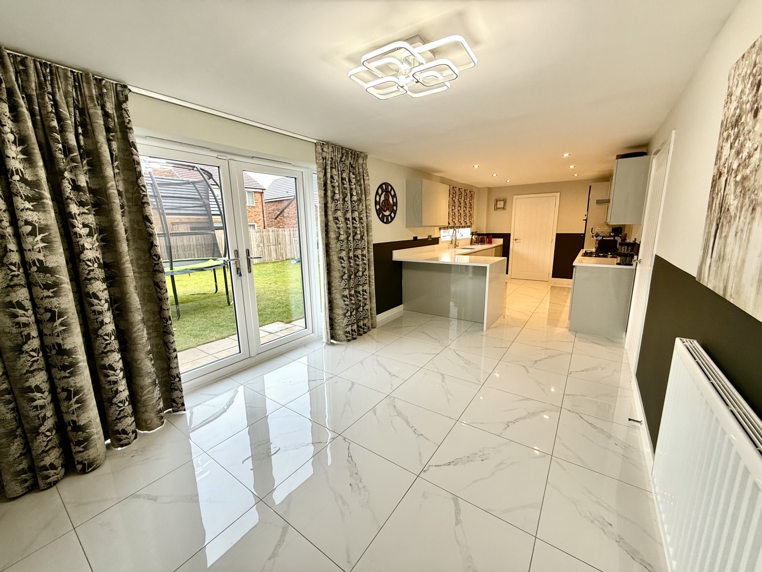 OIRO £350,000This handsome five-bedroom detached residence, recently constructed by the highly regarded Miller Homes, occupies an enviable position at the head of a quiet hammerhead with no through traffic, enjoying open views across the central green. From the moment you arrive, the sense of quality and exclusivity is immediately apparent, complimented by ample parking and a superb setting ideal for family life. The property has been extensively upgraded to create a truly luxurious family home, presented in impeccable decorative order throughout. The accommodation is both generous and thoughtfully arranged, featuring five well-proportioned bedrooms, two en-suites, and an impressive master bedroom complete with a walk-in dressing room. A pristine family bathroom and guest cloakroom further enhance the home's practicality. At the heart of the house lies the stunning 27-foot open-plan kitchen diner, beautifully upgraded and designed for modern living and entertaining, seamlessly supported by a separate utility room. A delightful formal lounge provides an elegant retreat, while the layout effortlessly balances style and comfort. Externally, the property continues to impress with neatly lawned gardens, a two-car driveway, and a double integral garage, offering both convenience and excellent storage. Combining a prime position, luxurious upgrades, and generous proportions, this exceptional home represents a rare opportunity to acquire a standout family residence in a highly desirable setting.