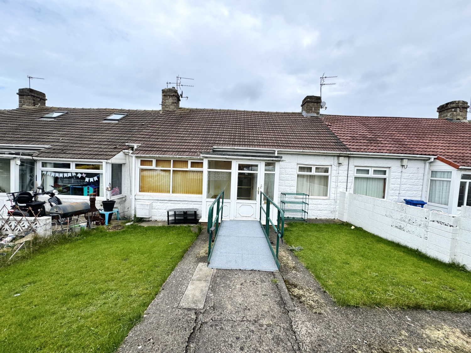 Guide Price £50,000This mid‑terraced two‑bedroom bungalow on Yoden Avenue in Horden offers a surprisingly spacious layout thanks to a rear extension and is available with no onward chain, making it an appealing option for buyers looking for a straightforward purchase. Approached via a front garden laid to lawn, the property welcomes you through a useful porch that leads into a central entrance hall, setting the tone for the generous proportions found throughout.
