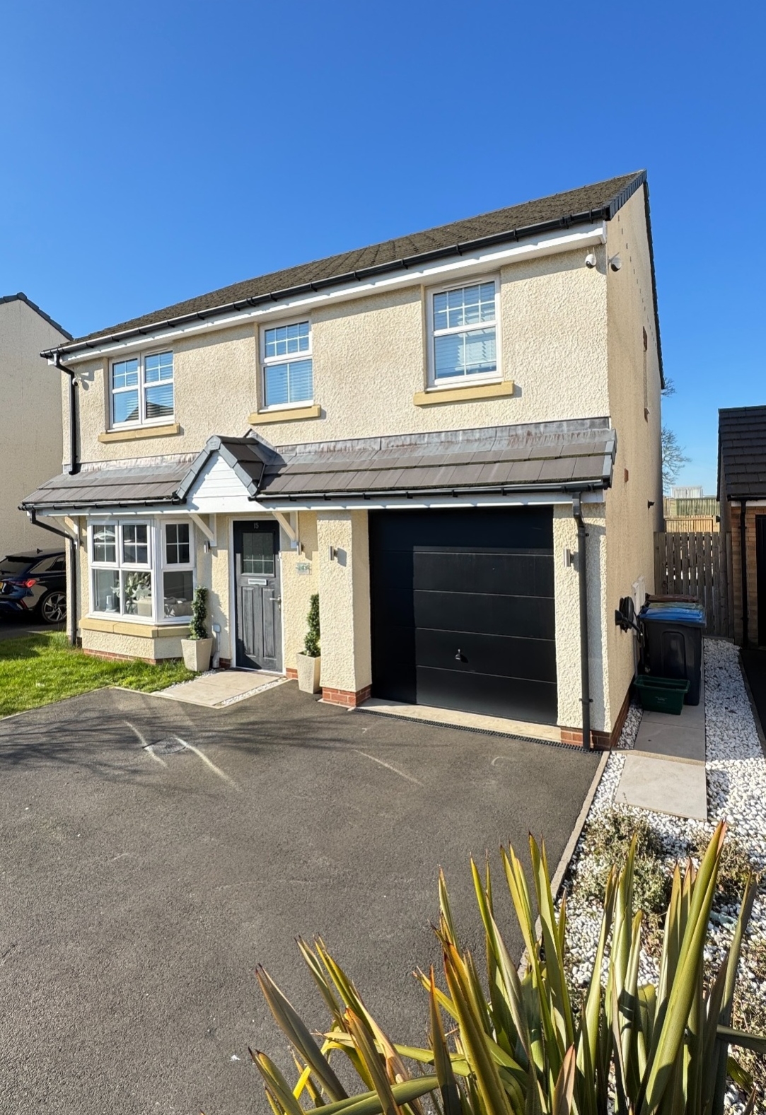 This superbly presented detached home offers spacious, modern living with quality fittings throughout and is truly walk-in ready. The ground floor comprises a welcoming entrance hall, a cloakroom/WC, a spacious and comfortable lounge, and a large family dining kitchen fitted with a range of integrated appliances including a fridge, freezer, and dishwasher, perfect for modern family living and entertaining. The property also benefits from an integral garage, which is accessed via an internal door from the hall and features a useful utility area with built-in appliances, an electric garage door, and an electric vehicle charging point. The first floor features four generous double bedrooms, including a master bedroom with en-suite, along with a well-appointed family bathroom. Bedroom three is currently used as a stylish beauty/dressing room, demonstrating the flexibility of the accommodation. To the rear, the property enjoys a beautifully landscaped garden offering a high degree of privacy and an ideal space for relaxing or outdoor dining. Parking is provided via the integral garage and a spacious double-width driveway. Situated in a popular residential location, the property is conveniently close to excellent local amenities, schools, and transport links, making it ideal for families and professionals alike. This property is “The Downham”, built by Taylor Wimpey in August 2019, and therefore still benefits from almost four years remaining on the NHBC guarantee. Viewing is strongly recommended.