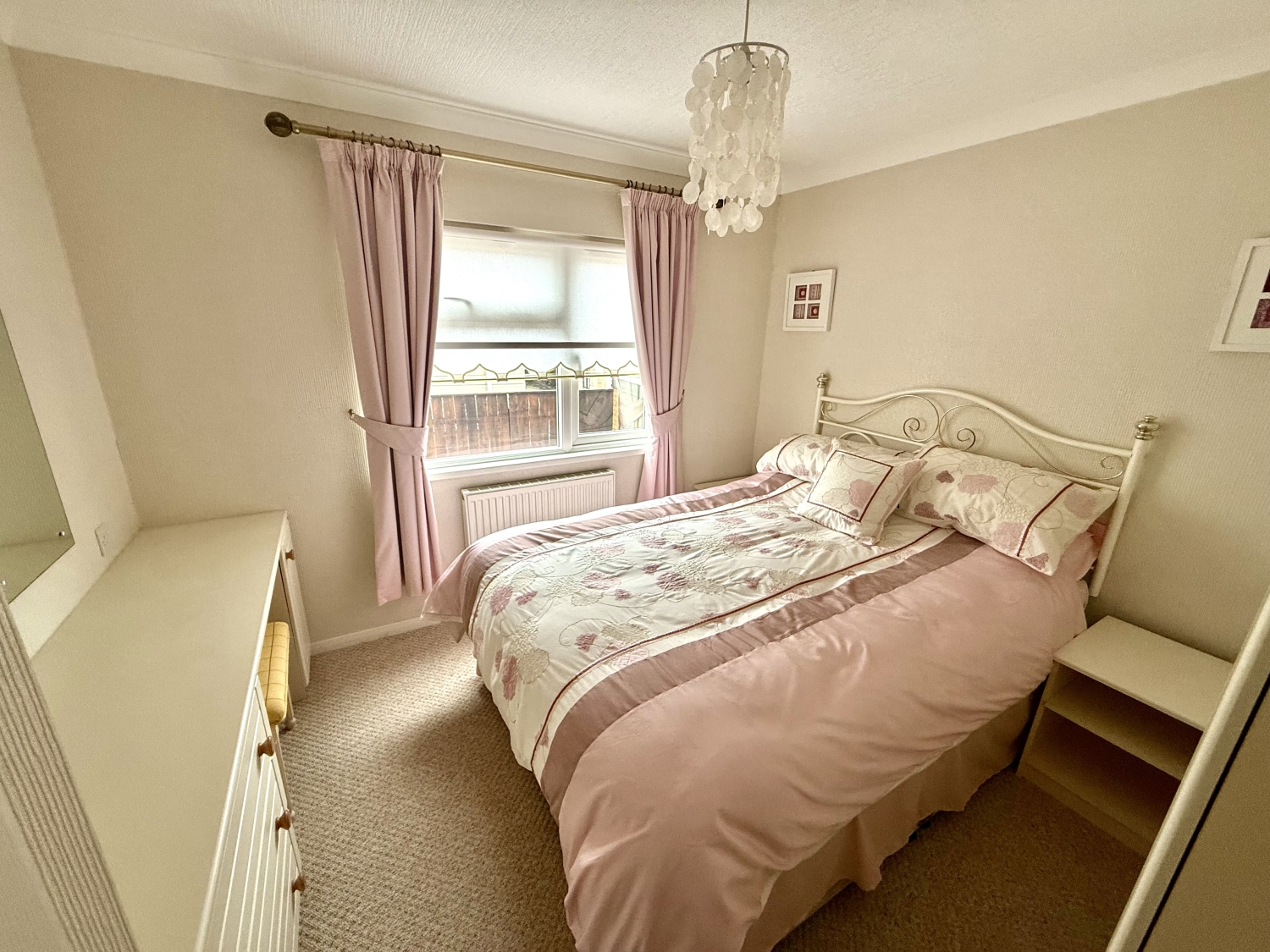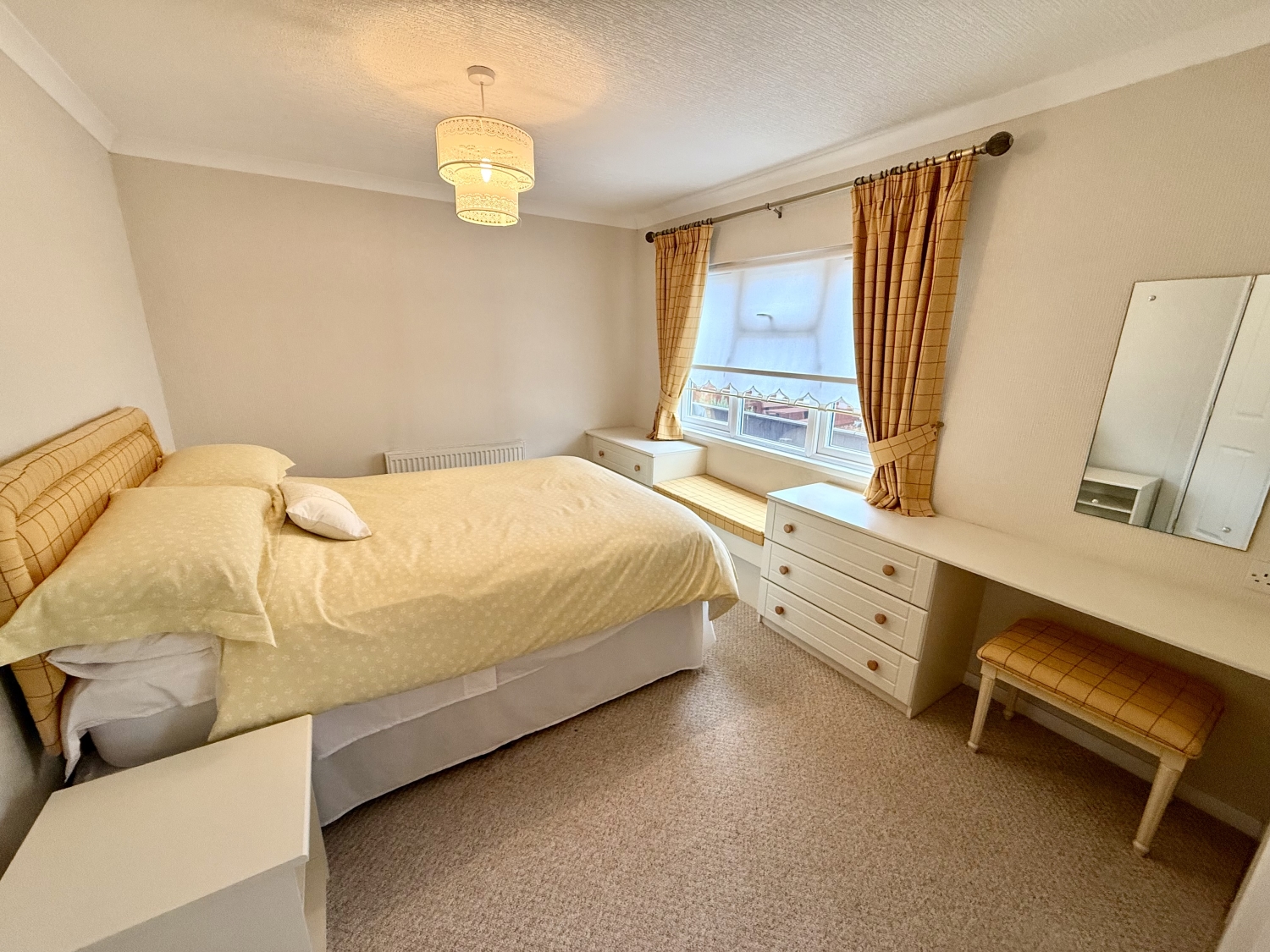 Double glazed UPVC window to the side, central heating radiator, fitted wardrobes, vanity area and coved ceiling.