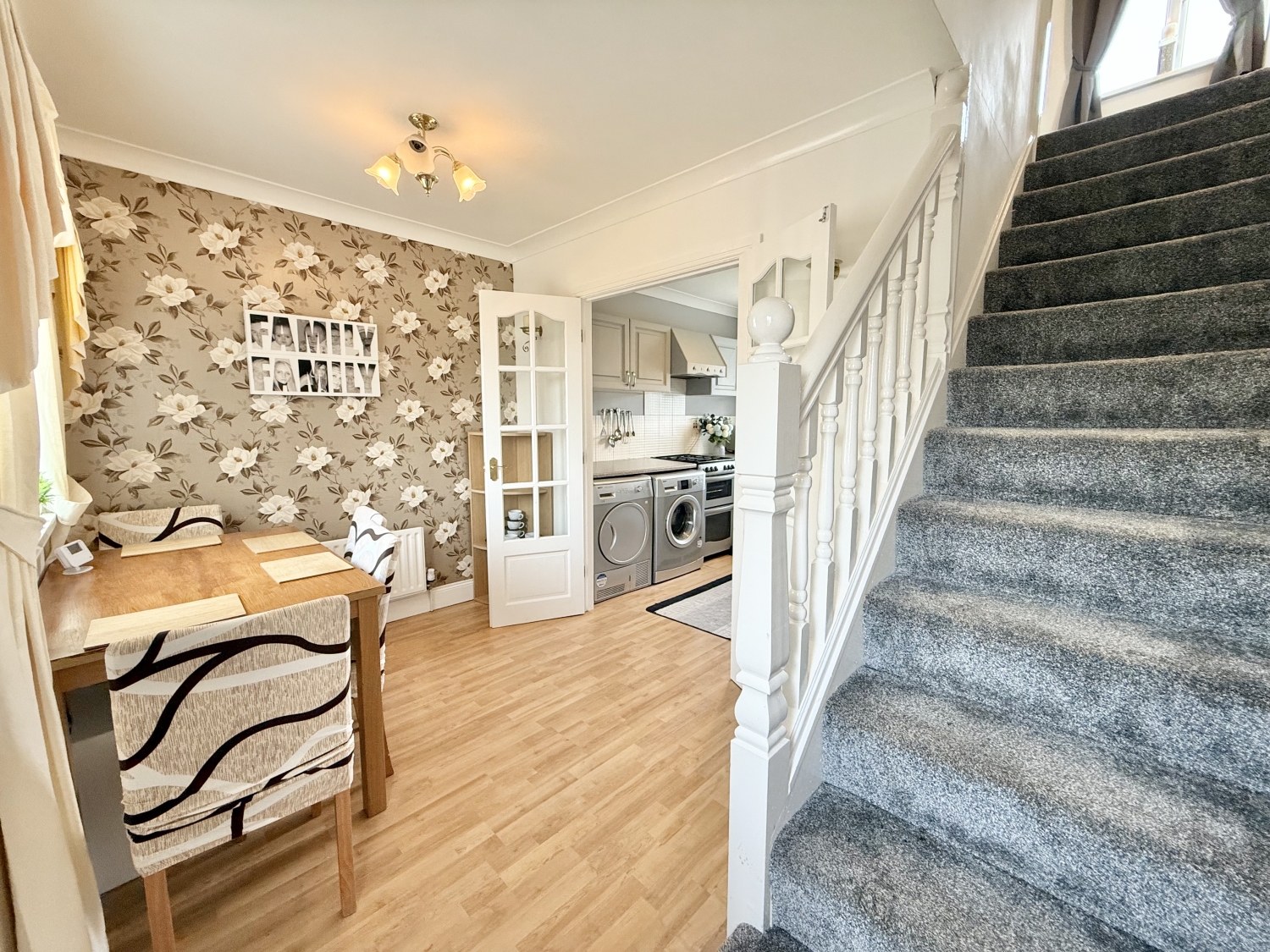 OIRO £139,950A well‑presented three‑bedroom family home offered for sale with no onward chain, located on the popular Hall Farm estate. The property opens with an entrance featuring useful storage, leading into a spacious lounge with sliding doors opening into the conservatory. A dining area with stairs to the first floor provides access to the rear garden, while double doors connect to the fitted kitchen. The first‑floor landing serves three generously sized bedrooms and a modern bathroom complete with a corner jet shower cubicle. Externally, the rear garden is fence‑enclosed and offers both lawn and patio areas with gated access. To the front, there is an additional lawned area. Further benefits include double glazing and gas central heating, with a brand‑new combi boiler installed in October 2025. Situated close to excellent transport links and local amenities, this property is ideal for first‑time buyers, families, or those looking to move up the property ladder.