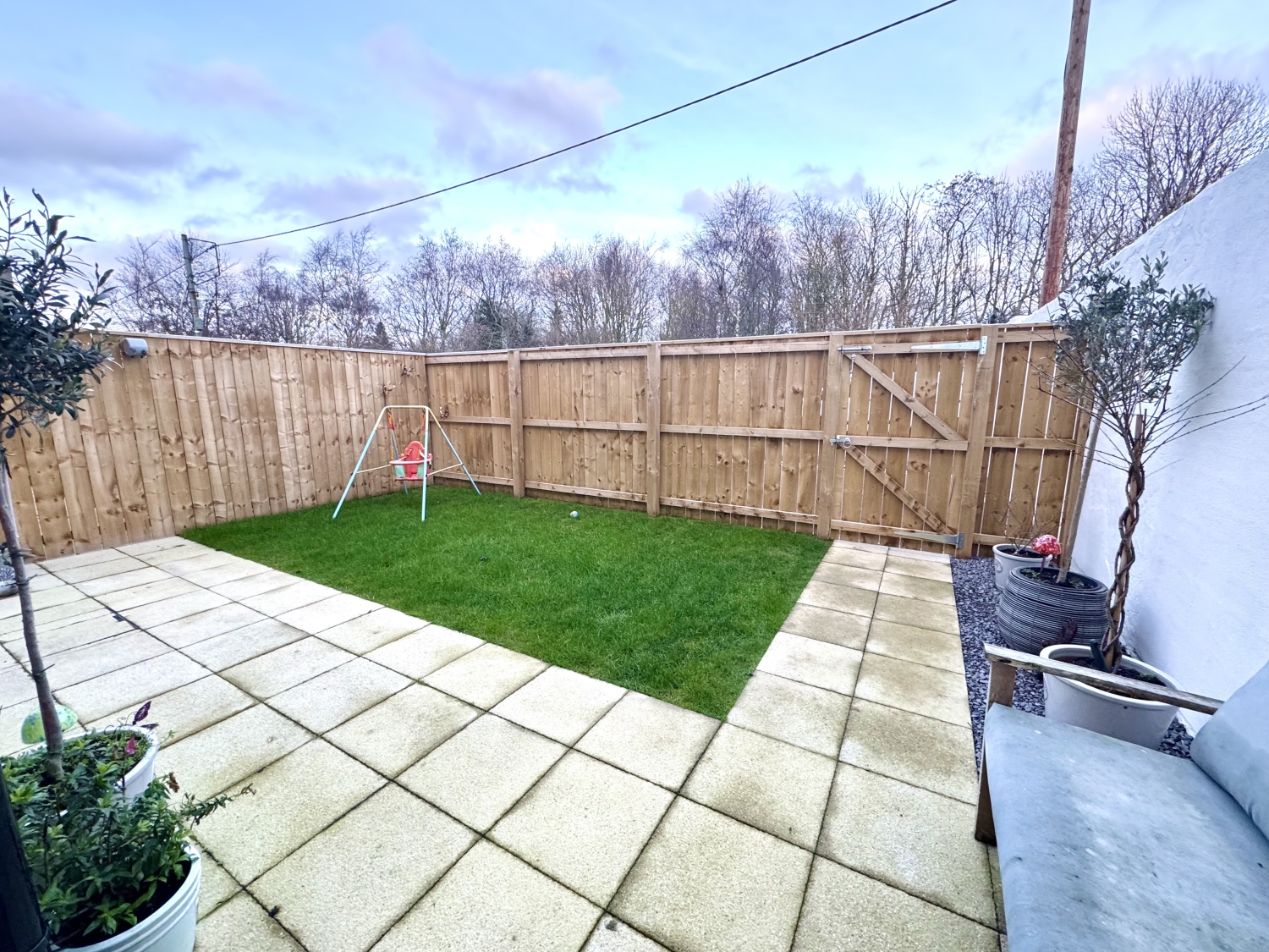To the Front;Low maintenance paved garden areaTo the Rear;Fully enclosed laid to lawn garden with paved patio area, gravel boarder, double block paved driveway, electric car charger point, outside sockets, tap, up & down lights and side access gate to the front elevation