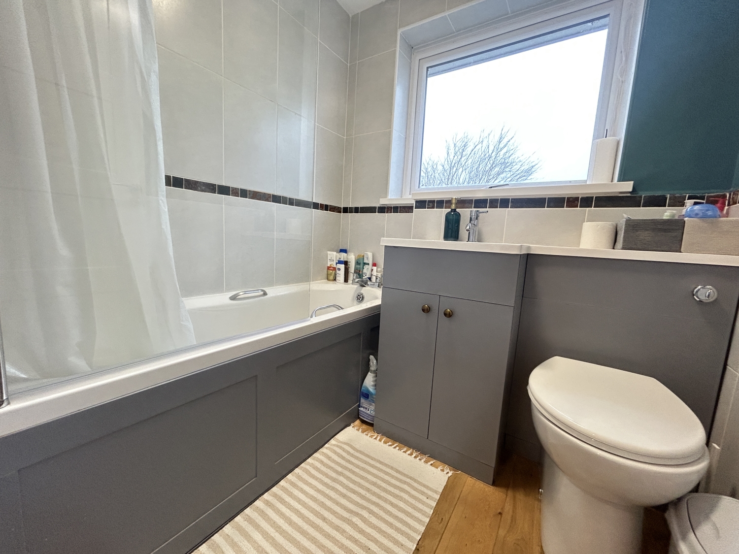 To the first floor, the landing provides access to three bedrooms—two generous doubles and a good‑sized single—together with a modern refitted family bathroom/WC featuring a shower over the bath.