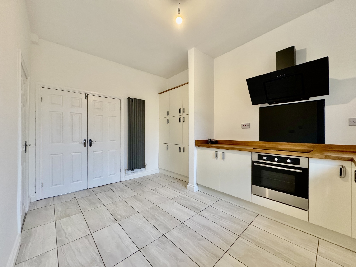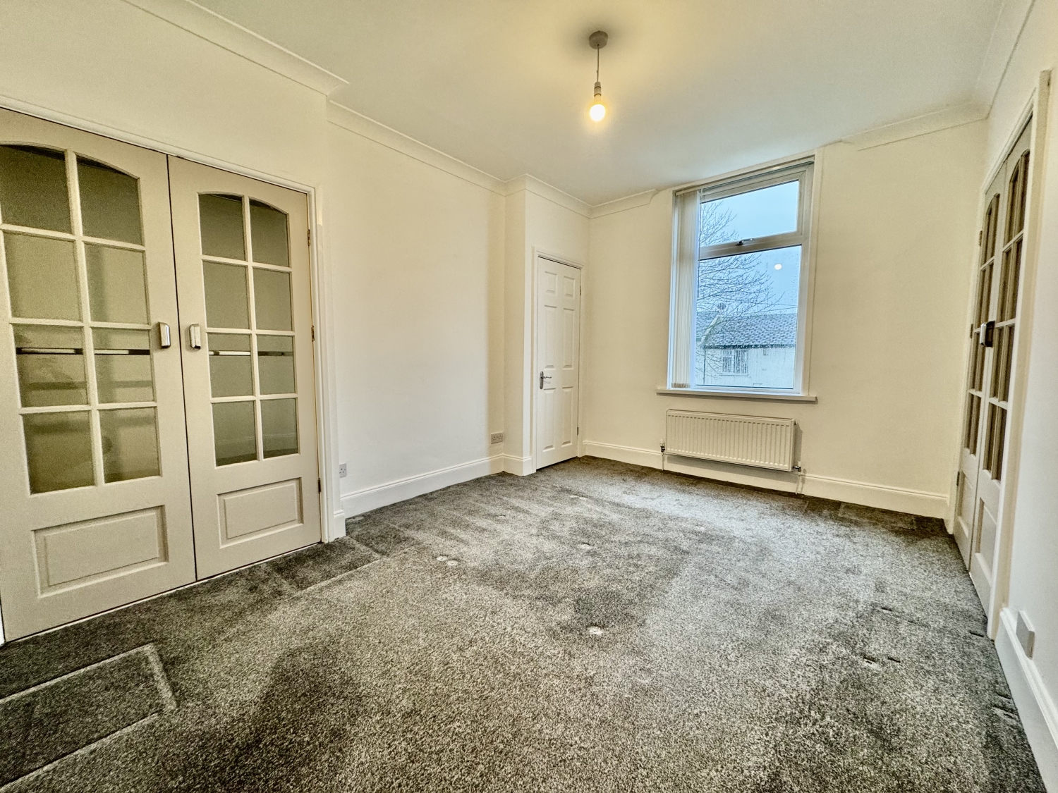 Double glazed window to the front elevation, under stairs storage cupboard, radiator, doors leading through to the kitchen .