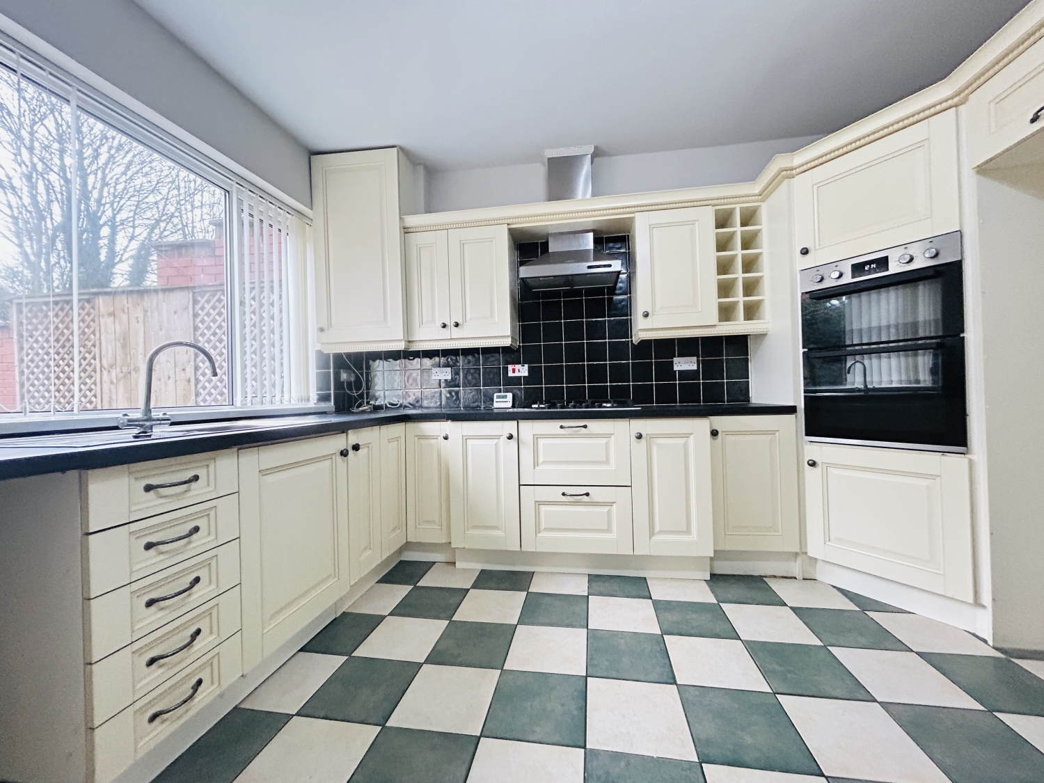 The spacious and attractively presented accommodation comprises: an inviting entrance hall, a generous lounge with ample space for a dining area if desired, and a stylish modern kitchen/breakfast room positioned at the rear. The kitchen provides excellent storage and worktop space, along with an integrated oven, hob and extractor canopy, fridge‑freezer housing, and further space for appliances. This bright, open‑plan room also accommodates a breakfast table and features patio doors leading to a pleasant paved courtyard — an ideal spot for relaxing or entertaining in the warmer months.