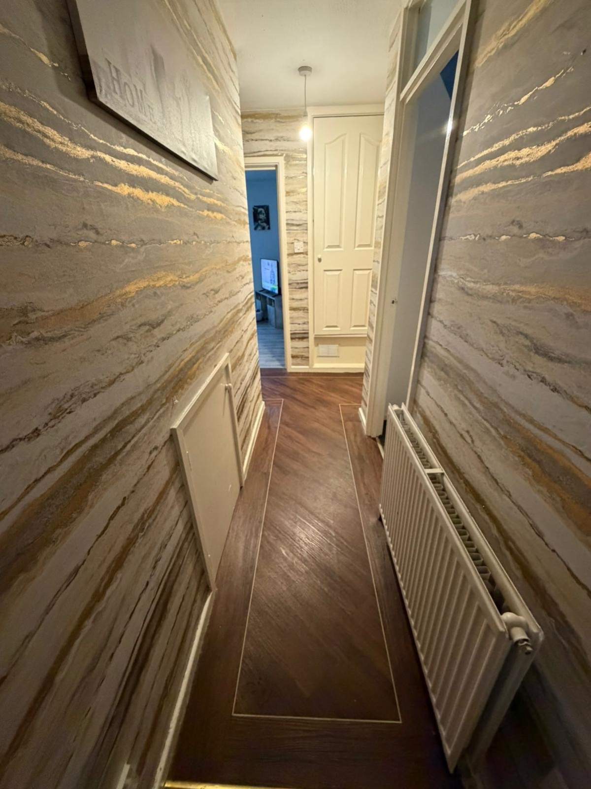 Entered via uPVC door, double central heating radiator, two storage cupboards, laminate flooring.
