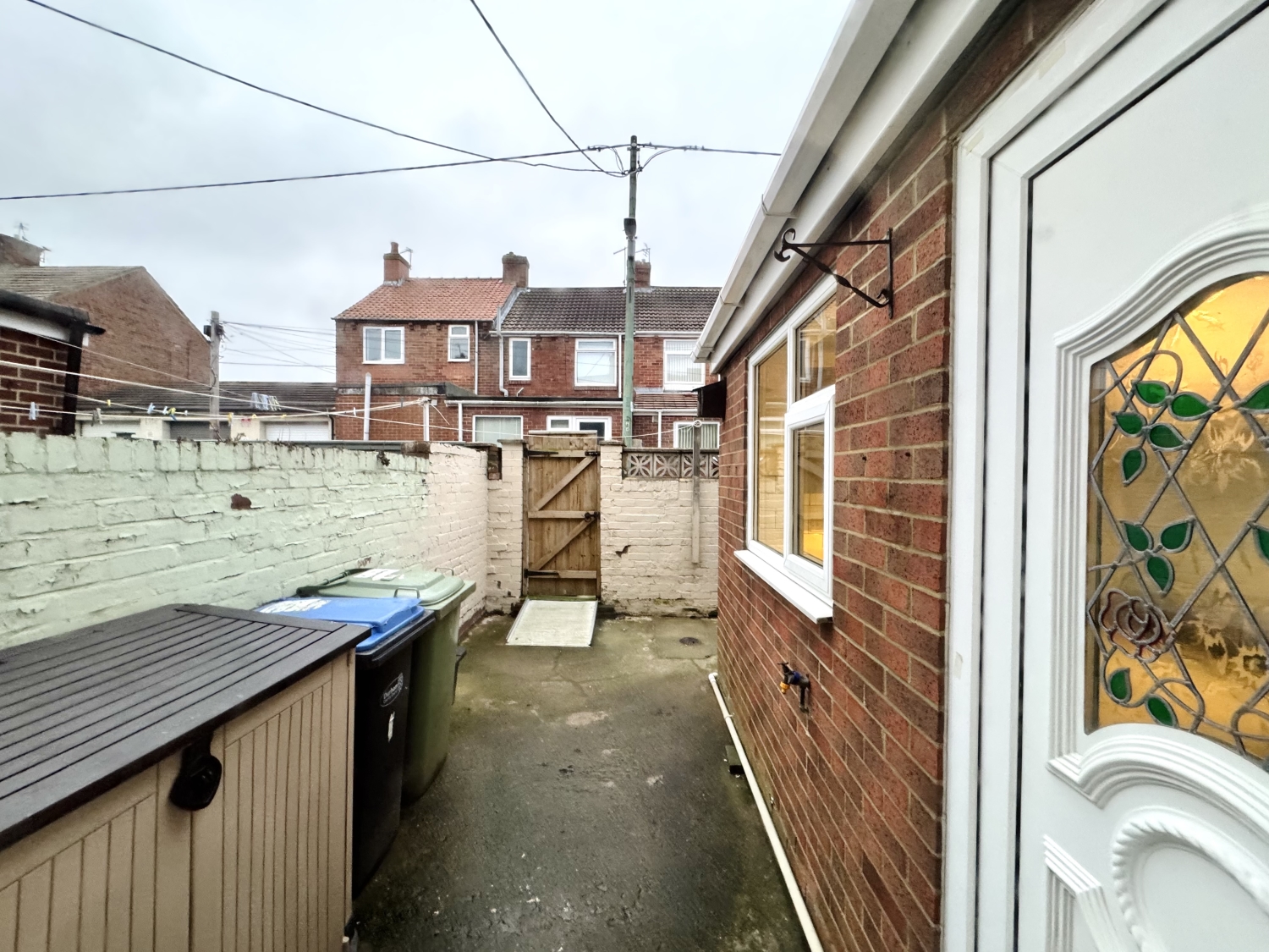 To the rear, the modern kitchen is fitted with contemporary units and benefits from a UPVC door that opens out to the enclosed rear yard, offering a private outdoor space for seating, storage or low‑maintenance gardening.