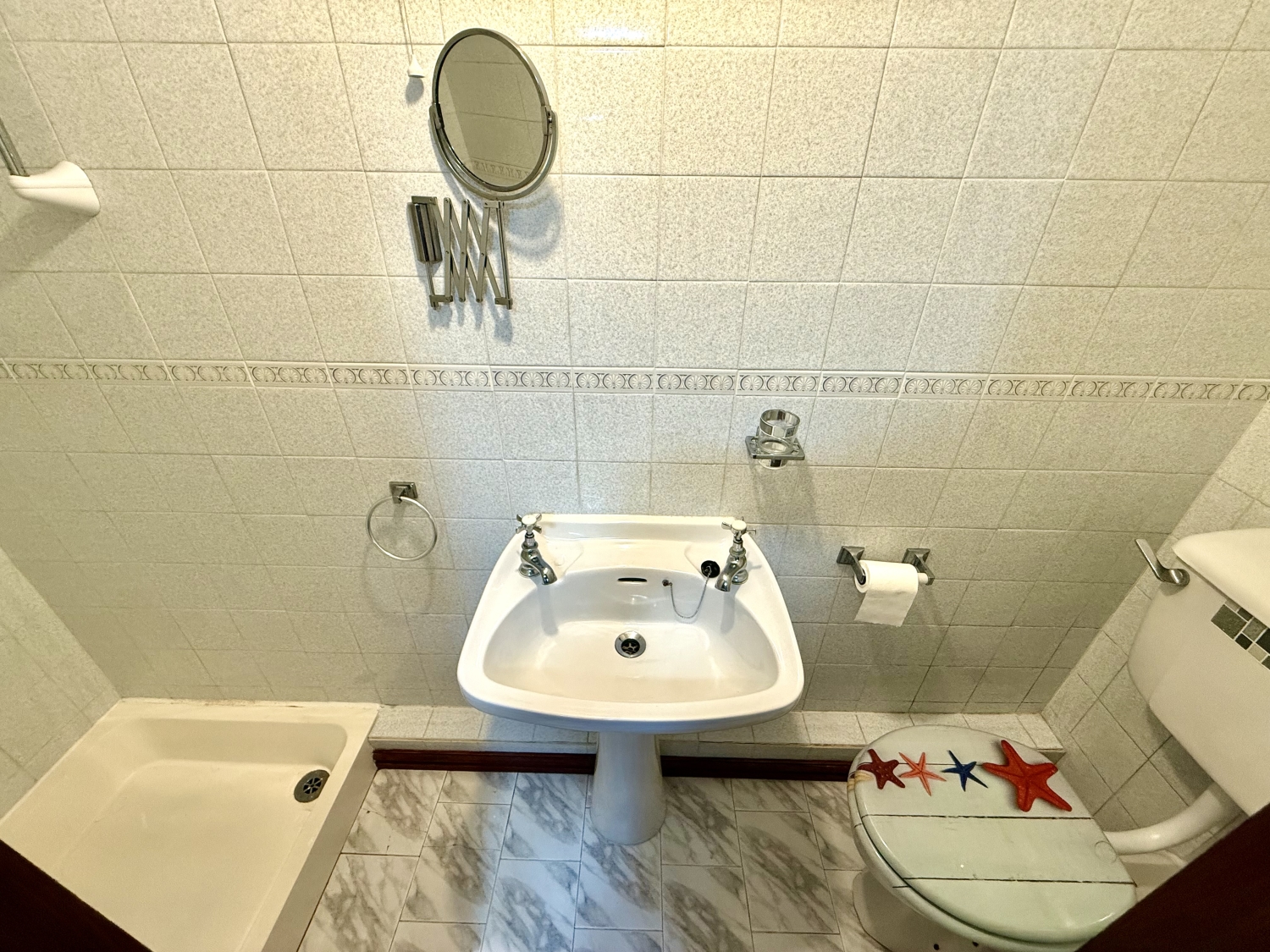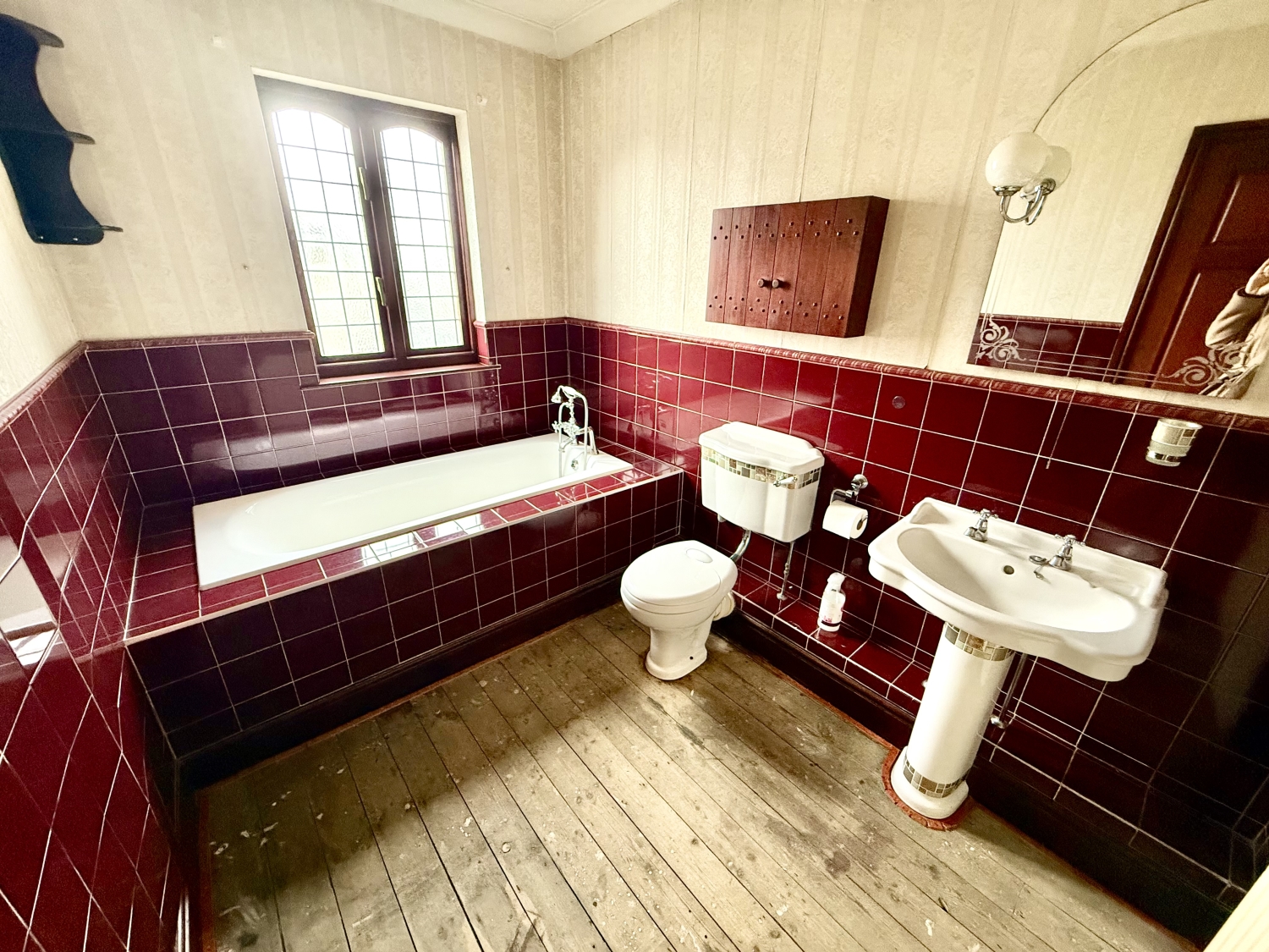 Fitted with a three piece suite comprising a tiled bath with chrome mixer tap shower over, pedestal wash hand basin and low level WC. Double glazed frosted hardwood window to the side, part tile walls and single central heating radiator.