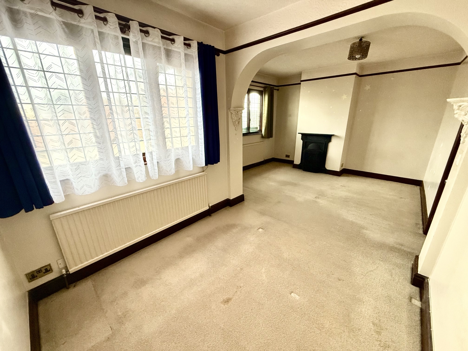 Hardwood double glazed leaded window to the front, double central heating radiator, feature mahogany fire surround with tiled hearth and also insert housing a living flamed gas fire and picture rail.