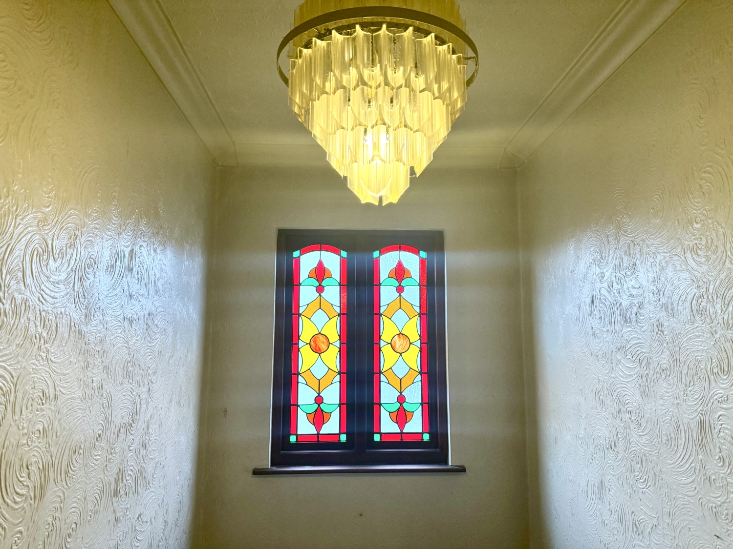 Entered via the the original door, stained glass porthole window, central heating radiator, stairs to the first floor, dado rail and delft rack.