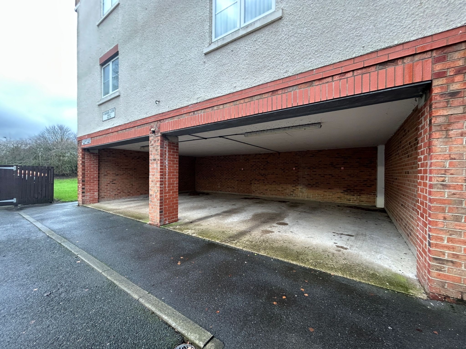 The building benefits from a secure communal entrance and includes an allocated, undercover parking space. Inside, the accommodation comprises an entrance hallway, a light and airy lounge featuring two large windows, which opens into a modern fitted kitchen with integrated oven and hob. There are two generously sized double bedrooms and a bathroom/WC fitted with a shower over the bath.