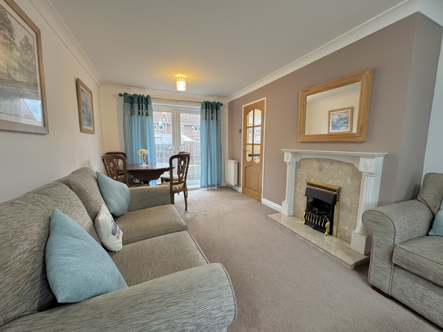 The ground floor begins with an entrance hall leading into a spacious kitchen/diner, featuring ample space for family dining and French doors opening onto the enclosed rear garden. A comfortable lounge completes the ground floor accommodation, offering a welcoming space to relax.