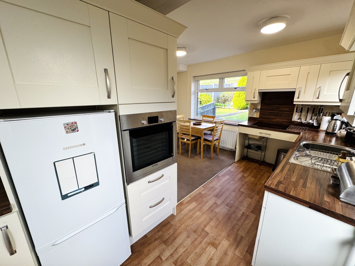 Externally, the rear garden is a standout feature, offering a generous lawned area, mature borders, patio spaces ideal for outdoor dining or relaxation, a useful shed, and a side access gate. The garden provides a private and versatile outdoor retreat suitable for families, gardeners, or those who simply enjoy spending time outside.