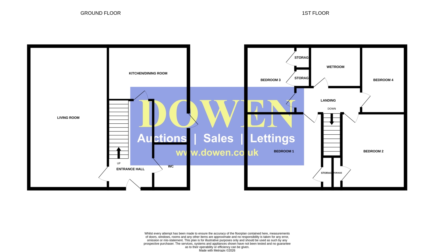 The first‑floor landing gives access to four well‑proportioned bedrooms, offering flexibility for family living, guest accommodation, or home working. A modern wet room completes the upper level, featuring contemporary fittings and a clean, stylish finish.