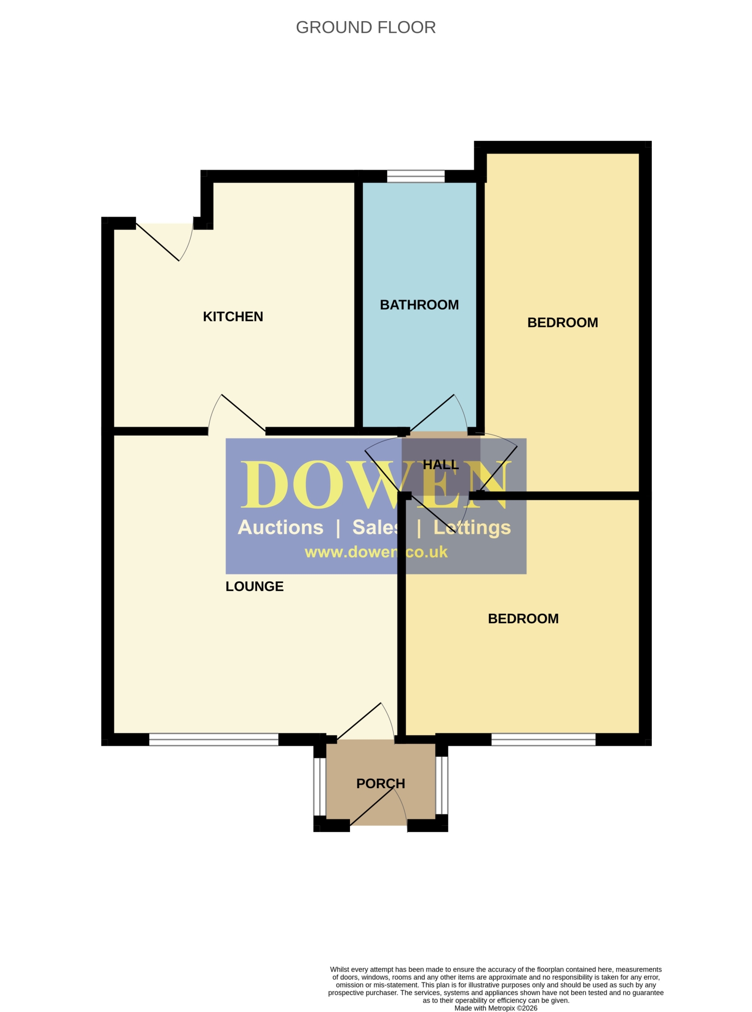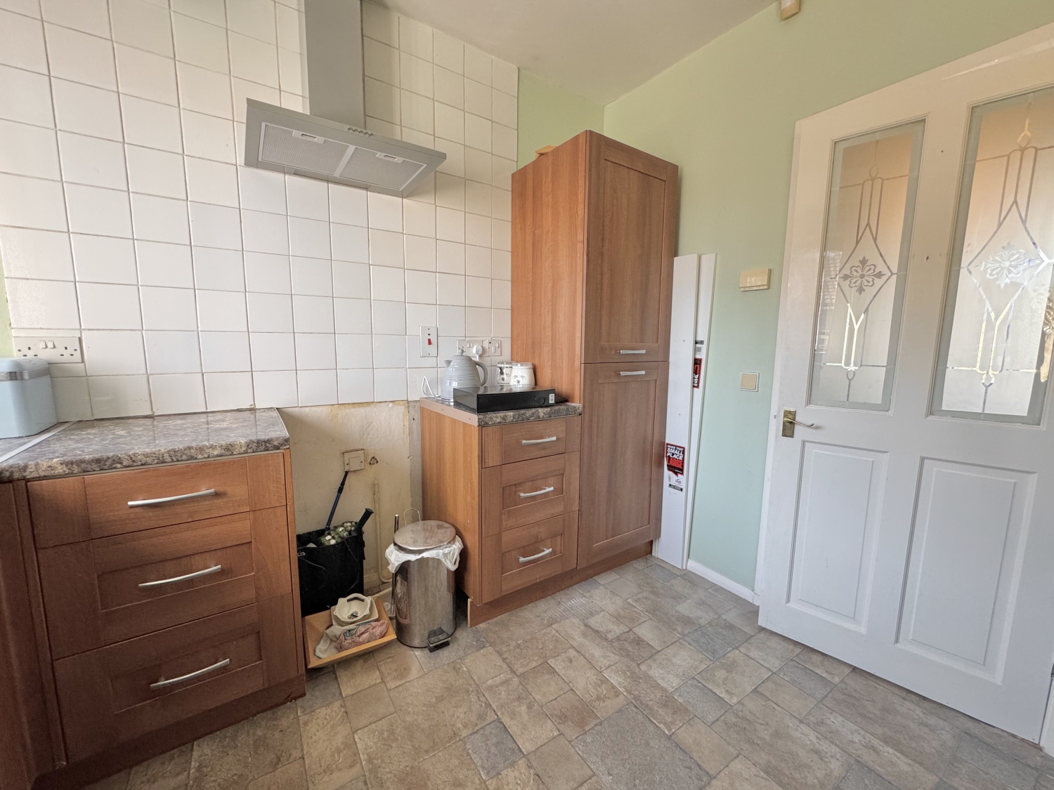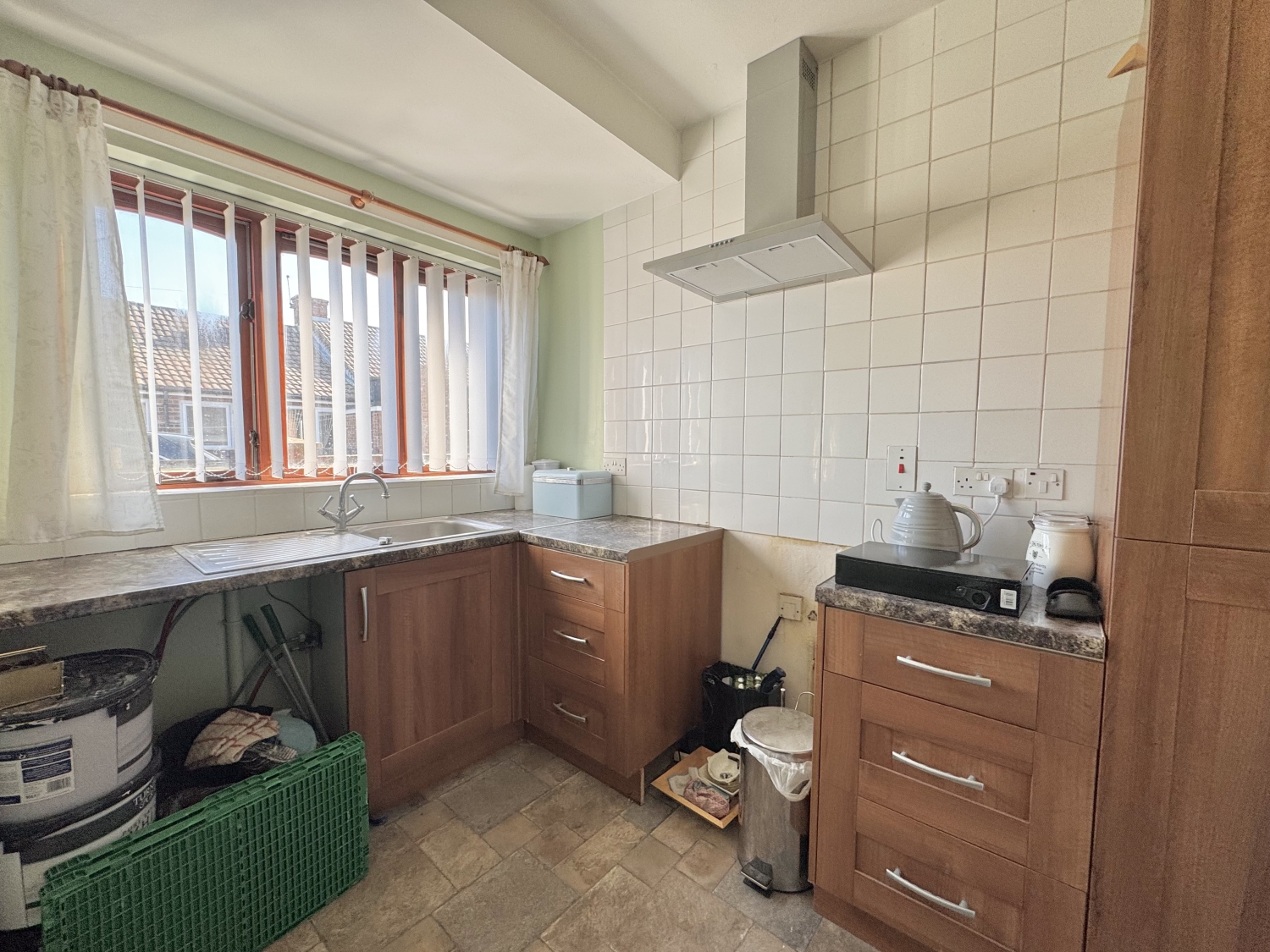 Upon entering via the UPVC double-glazed porch, you are welcomed into a comfortable lounge, leading through to the kitchen, fitted with base units and offering access to the rear garden. An inner hallway provides entry to the bathroom and two well-proportioned bedrooms.