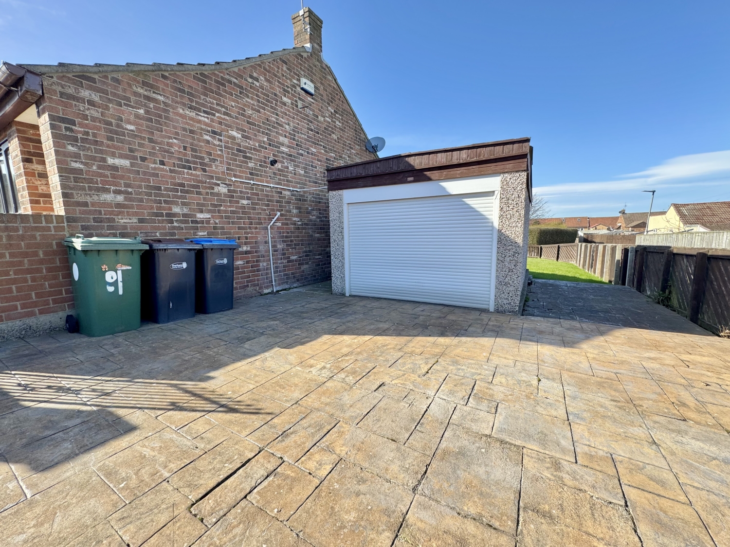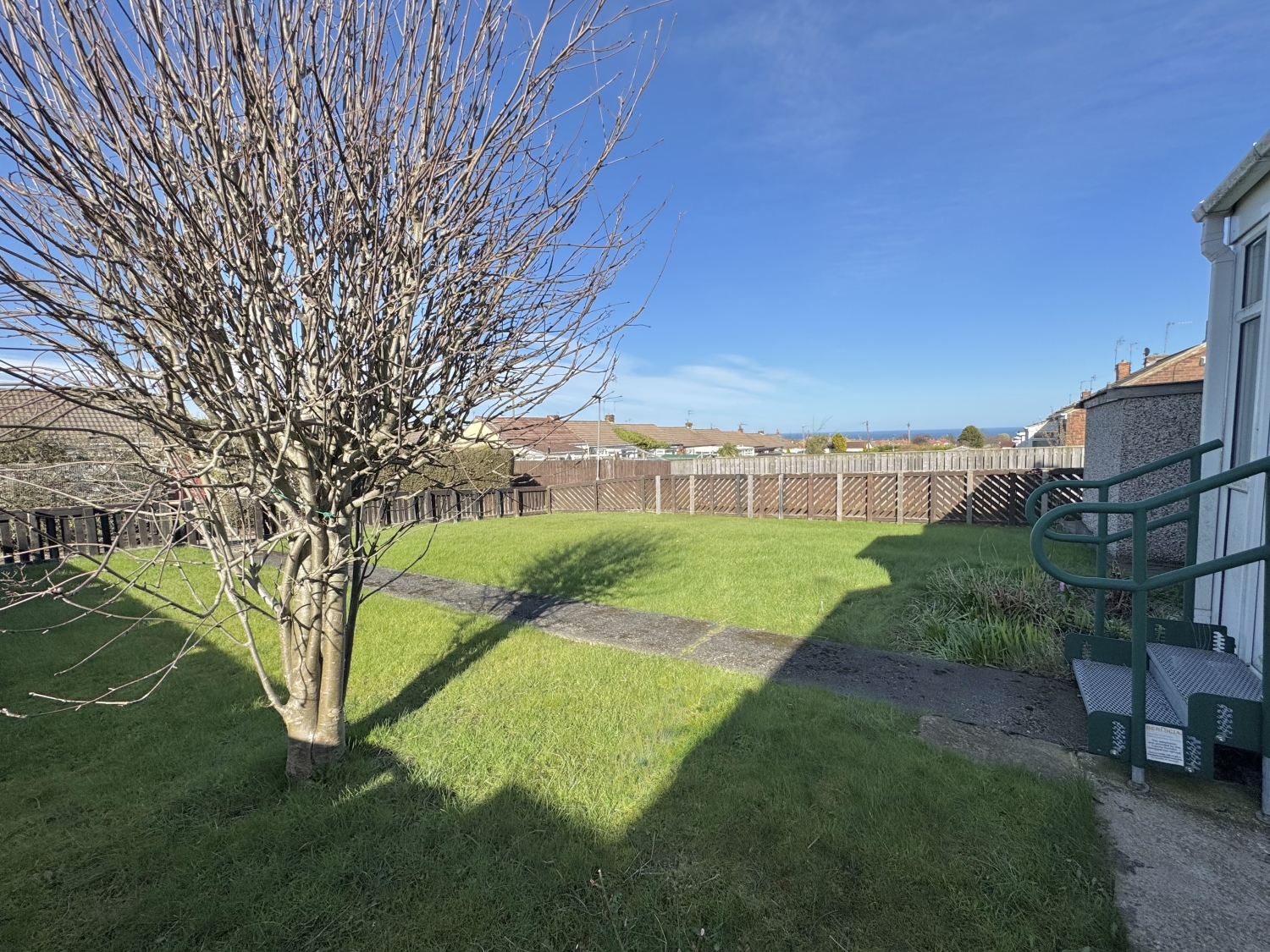 Externally, the bungalow benefits from enclosed gardens to both the front and rear, with the front garden enjoying a pleasant sea view. A driveway provides off-street parking and leads to a detached garage complete with an electric roller shutter door.