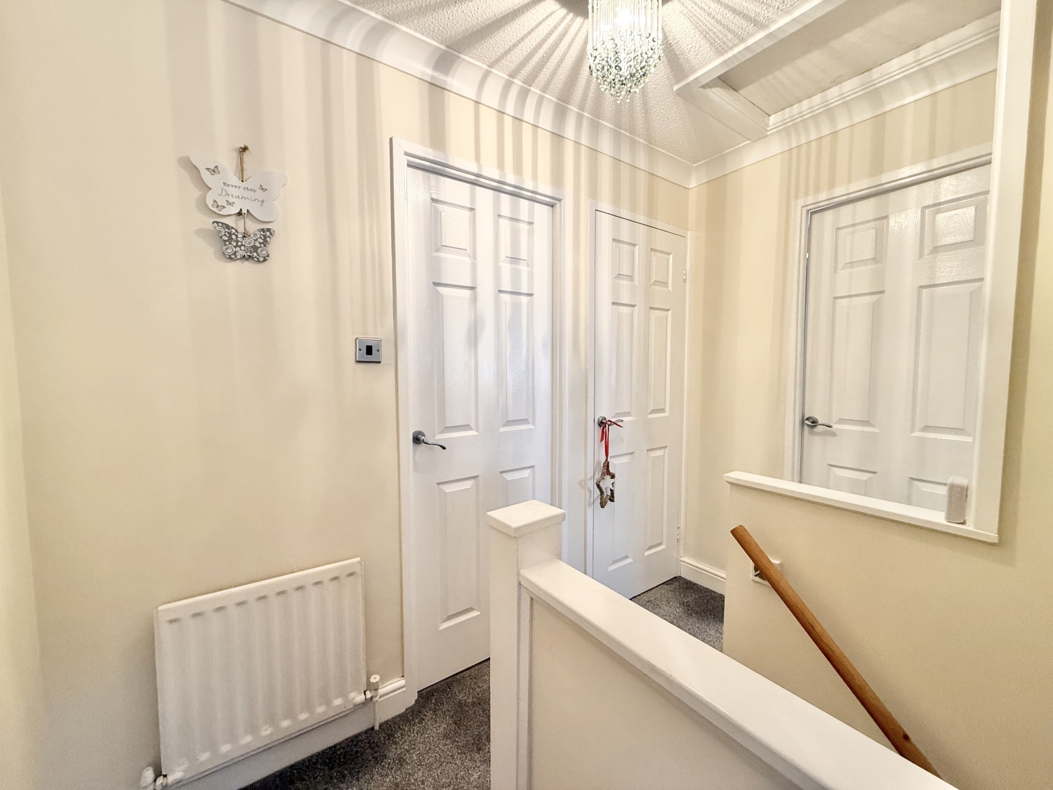 OIRO £135,000This well‑presented three bedroom semi‑detached home offers comfortable living in a popular residential area, making it an excellent choice for first‑time buyers, families, or anyone looking to move without the complications of an onward chain. The property opens with a welcoming entrance hall that includes useful storage, leading into a spacious lounge filled with natural light. To the rear, a kitchen and dining area provides integrated appliances and ample room for everyday meals, with a door giving direct access to the garden. Stairs from the hallway lead to the first floor, where the landing connects three well‑proportioned bedrooms, the main of which features fitted wardrobes. The bathroom includes both a shower cubicle and a bath, complemented by a separate W.C. Externally, the rear garden is fence‑enclosed and paved for easy maintenance, with a shed offering additional storage. The frontage includes a neat lawn area that enhances the property's kerb appeal. With double glazing and gas central heating throughout, this home is ready to move into and offers a practical, inviting space for a range of buyers.