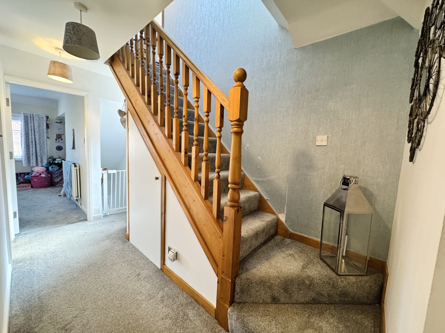 Double glazed window to the side elevation, radiator, storage cupboard, stairs leading to the 2nd floor landing