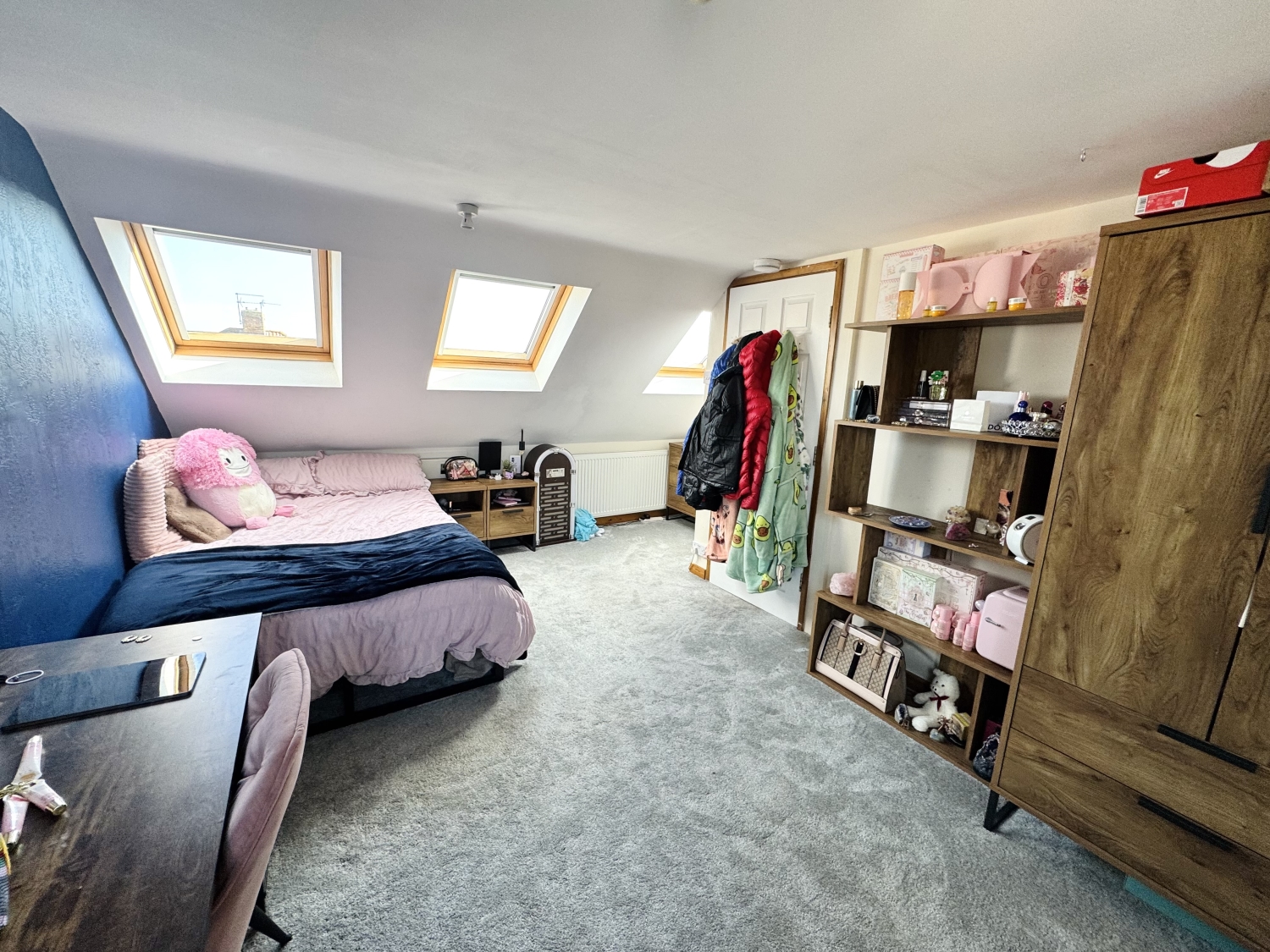Three Velux windows to the front elevation, double glazed window to the rear elevation, 2x radiators, storage cupboard