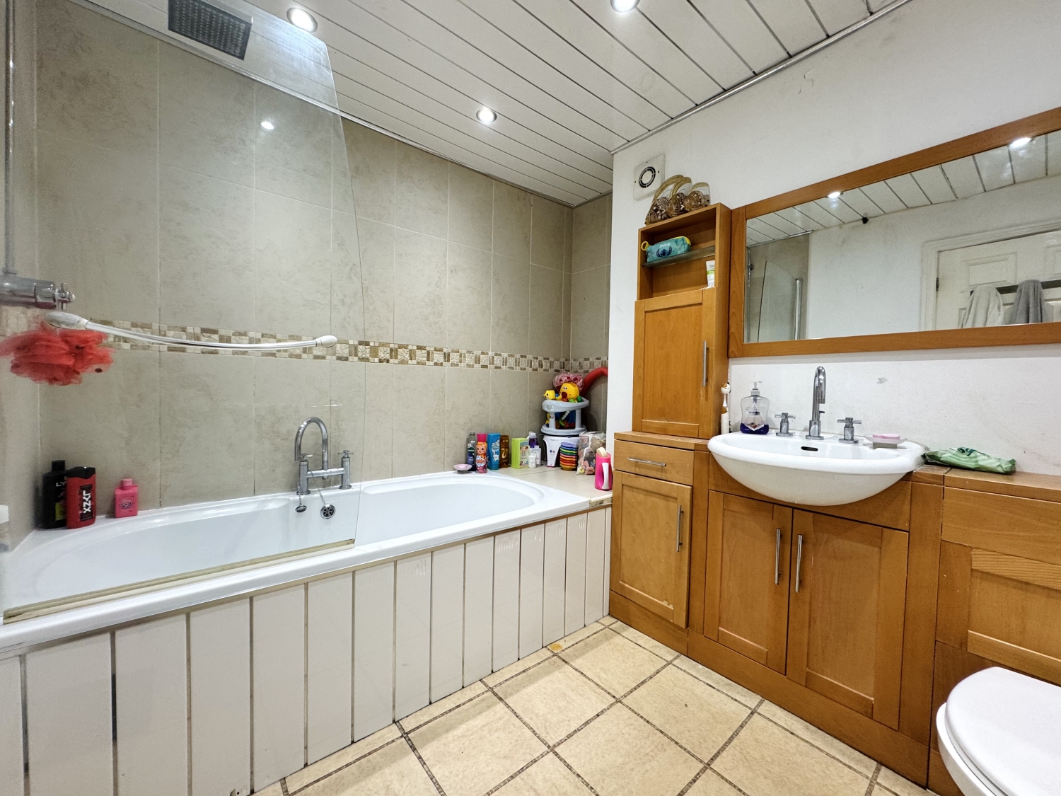 Fitted with a 3 piece suite comprising of; Bath with overhead shower, vanity wash hand basin, low level w/c, heated towel rail, spotlights to ceiling