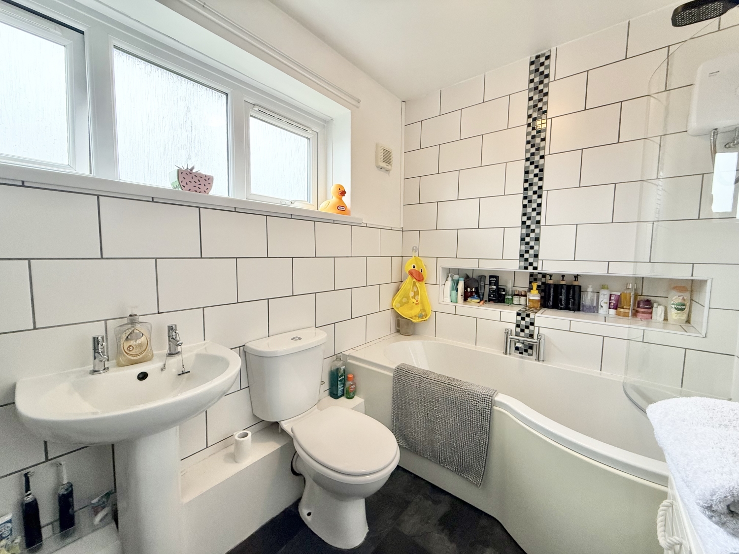 OIRO £149,950A spacious and beautifully presented three-bedroom mid-terrace family home, ideally suited to first-time buyers, growing families, or those looking to move home. The property briefly comprises an inviting entrance hallway with stairs leading to the first floor, a convenient ground floor WC, a comfortable and well-proportioned lounge, and a contemporary kitchen/diner. The kitchen is thoughtfully designed with integrated appliances, a central island, and double doors opening out to the rear garden—perfect for modern family living and entertaining. To the first floor, the landing provides access to three generously sized bedrooms, with bedrooms one and three benefiting from fitted wardrobes. A modern family bathroom completes the accommodation. Externally, the property boasts a fully enclosed rear garden featuring a patio area, low-maintenance artificial lawn, and off-road parking. To the front, there is a further enclosed garden with a combination of artificial turf and paved areas. Additional benefits include double glazing and gas central heating throughout. Situated in a popular residential location, the property is conveniently close to local amenities, schools, and excellent transport links, making it an ideal choice for a wide range of buyers.
