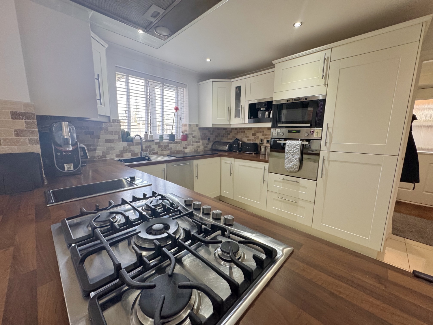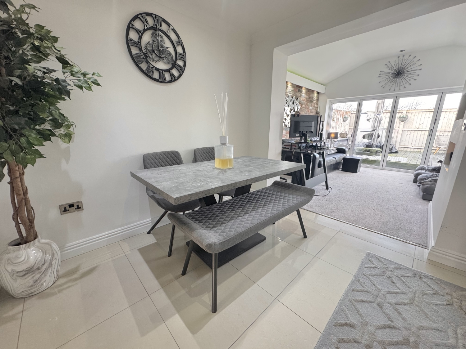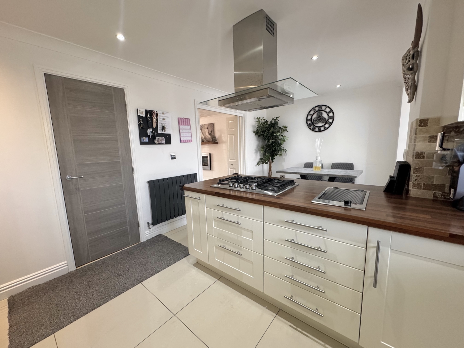 £259,995An immaculate and extended four‑bedroom detached home set within a popular residential estate close to local amenities, transport links, and well‑regarded schools. This beautifully presented, turn‑key property offers generous living space and a modern layout ideal for family living. The ground floor features a welcoming entrance hall, a comfortable front lounge, and a stunning open‑plan kitchen and dining area that flows into the extended reception space with under floor heating. Bifold doors open directly onto the rear garden, creating a bright and seamless connection between indoors and outdoors. A useful utility room and a ground‑floor WC complete the downstairs accommodation. The first floor offers four well‑proportioned bedrooms, including a master bedroom with its own ensuite, along with a modern family bathroom. Externally, the property enjoys an open front garden with a driveway providing parking for multiple vehicles and leading to an integrated garage. The rear garden is fully enclosed and laid mainly to lawn, complemented by raised decking that provides an ideal space for outdoor seating and entertaining. This is a truly immaculate, move‑in‑ready home that must be viewed to be fully appreciated.