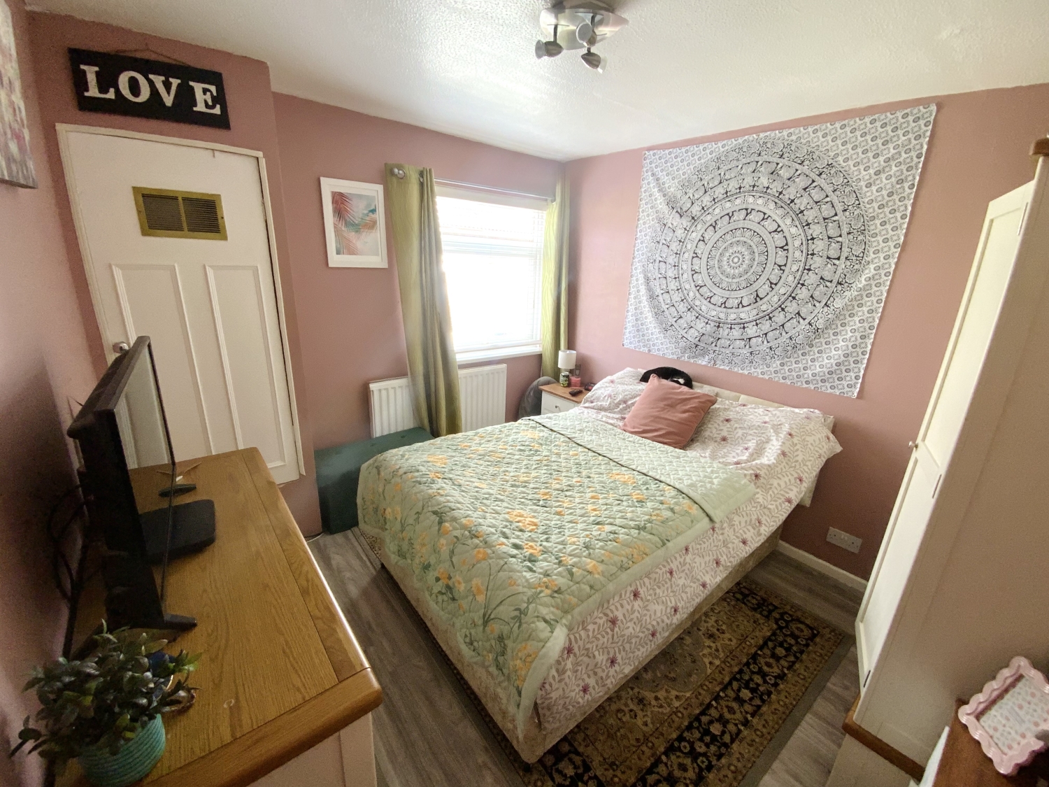 Double glazed window to the side elevation, storage cupboard, radiator