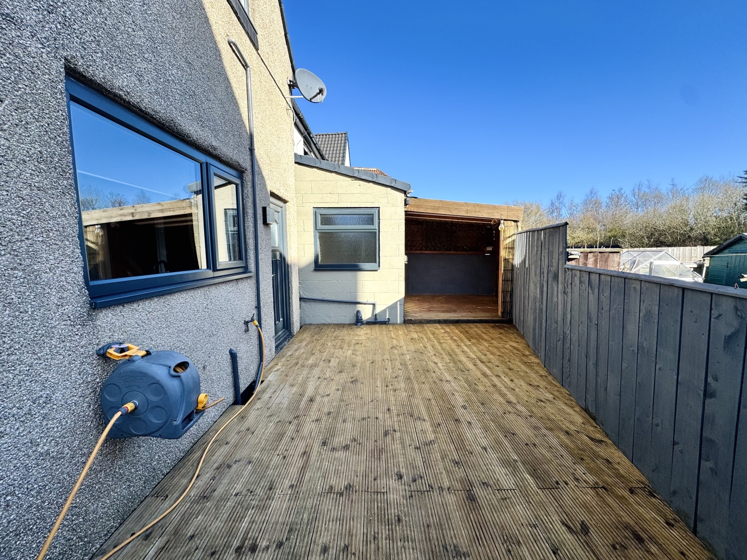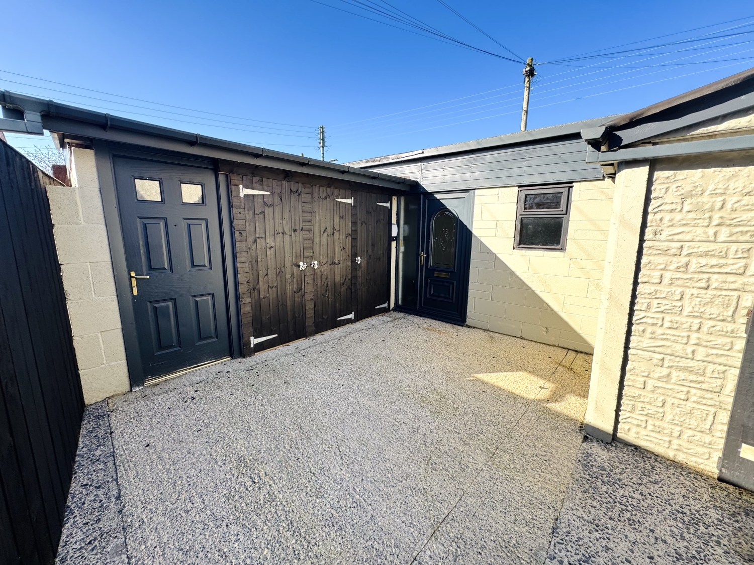 The rear garden is designed for both practicality and enjoyment, offering a decked seating area, hot and cold outdoor taps, and a covered hot tub area with external sockets. A block‑paved section provides gated access to the front, while an additional area to the side and rear offers exceptional versatility with three kennel/storage units, a workshop, a gym or multi‑use space, and access to the single garage. These outbuildings make the property particularly appealing to those needing workspace, hobby areas or secure storage.