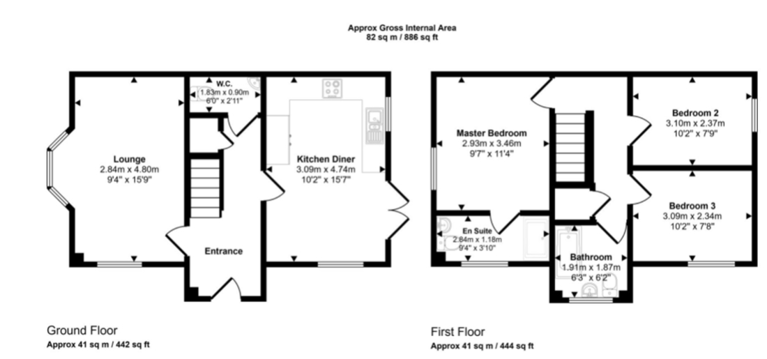 3.0988m x 2.3368m - 10'2" x 7'8"