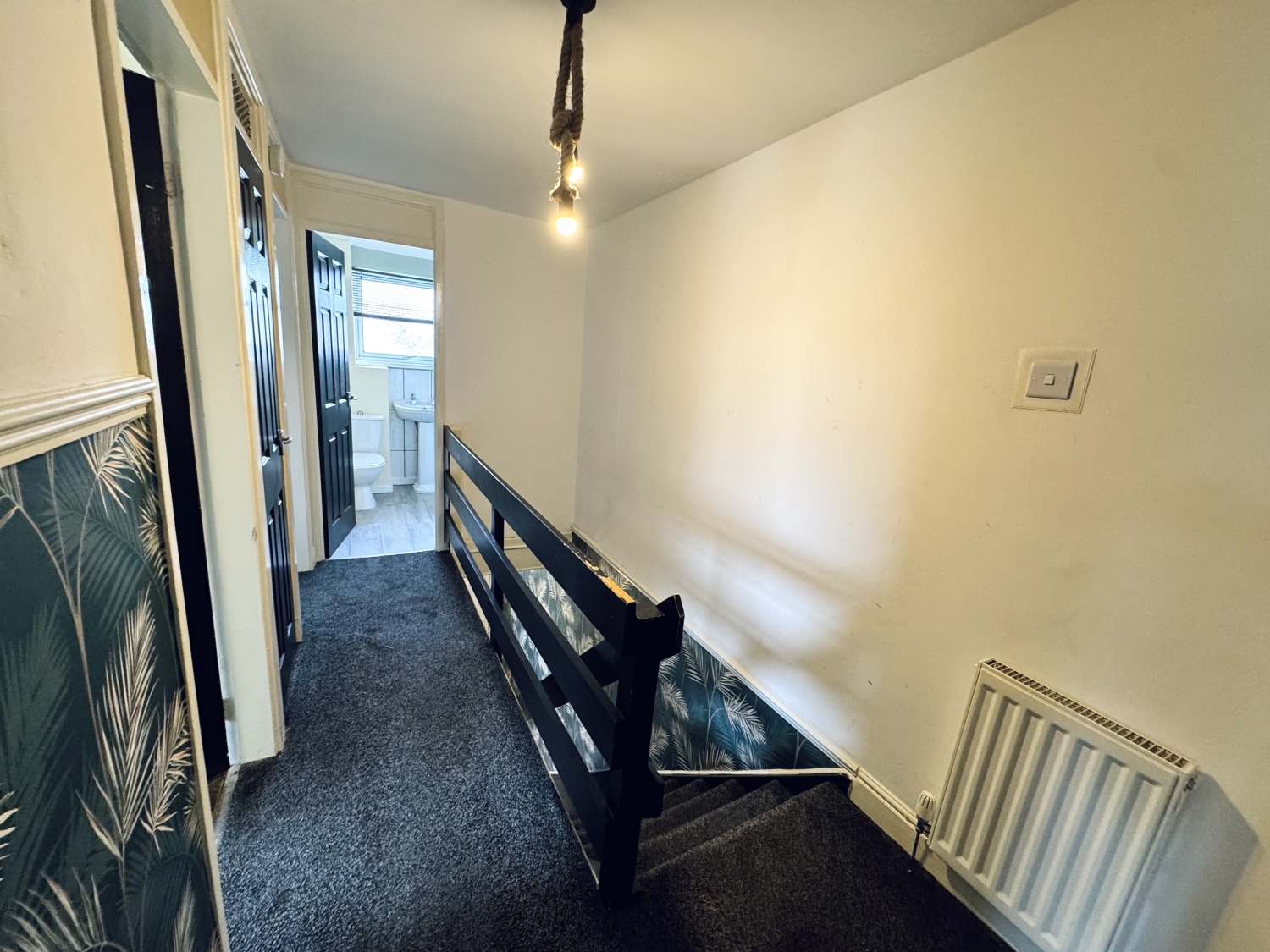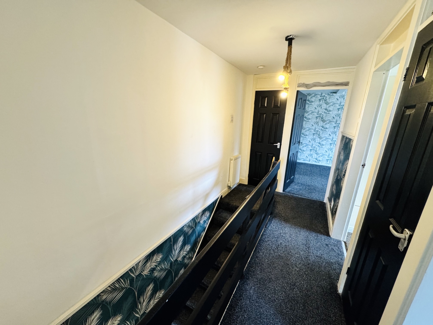 Upstairs, the landing leads to three well‑proportioned bedrooms, each offering comfortable accommodation for family members, guests, or home‑working needs. The bathroom features a modern three‑piece suite, including a shower cubicle, providing a practical and tidy space for daily routines.