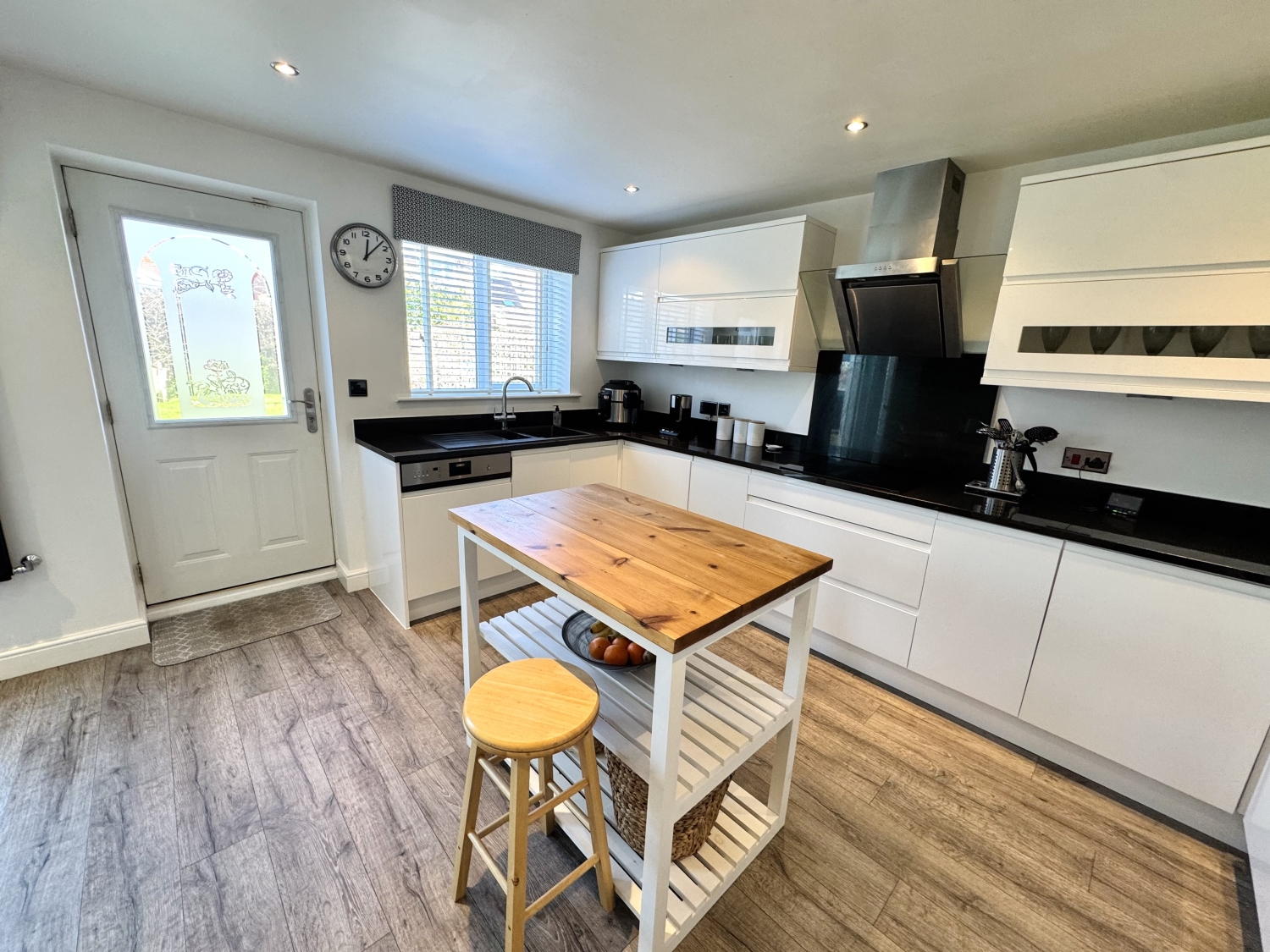 The dining room opens into the modern kitchen/breakfast room, which is fitted with contemporary units, granite work surfaces, and an additional uPVC door providing access to the rear garden. This arrangement creates a sociable and functional layout that works beautifully for everyday family life as well as hosting guests.