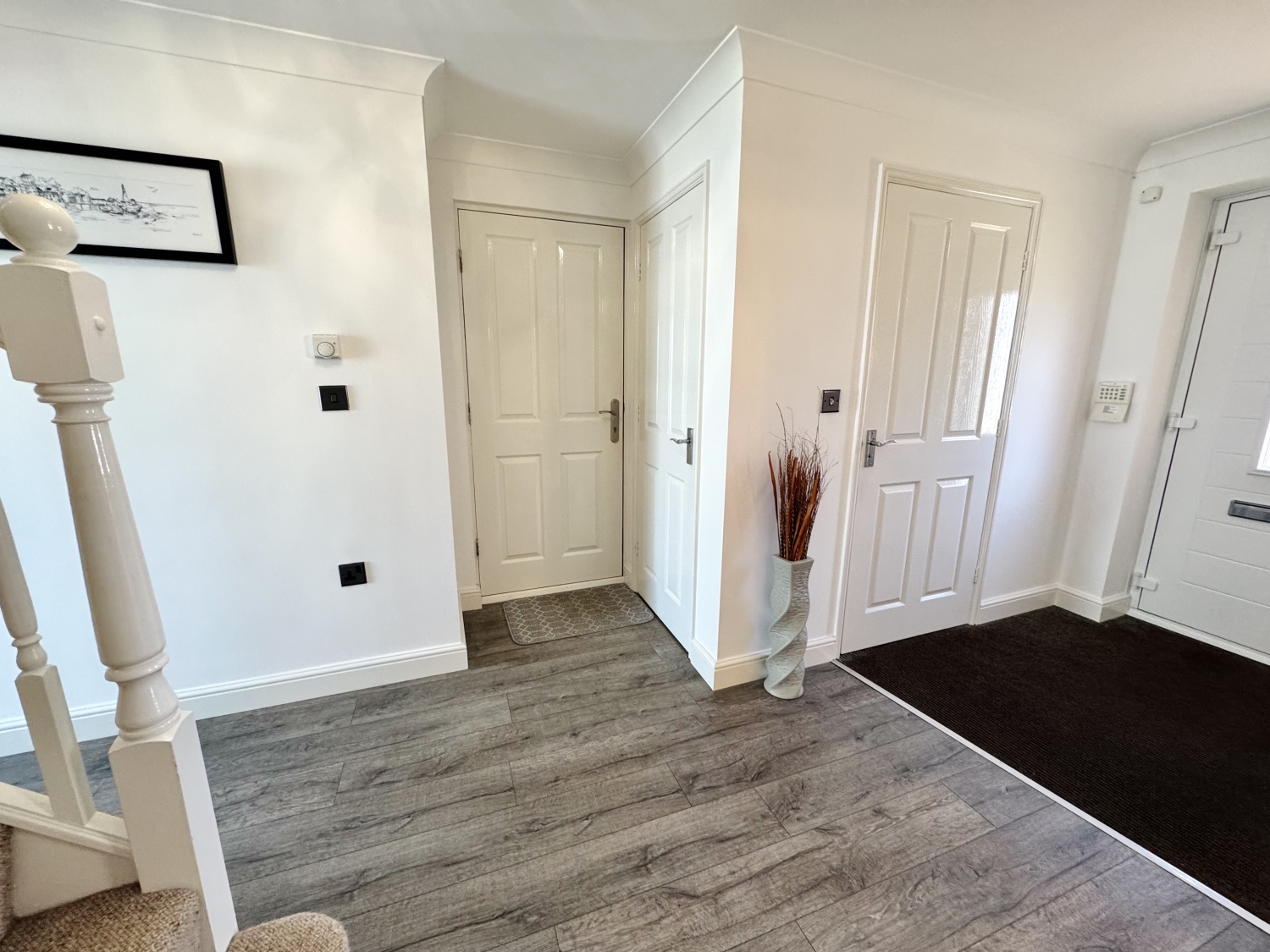 Composite door, radiator, storage cupboard, radiator, integral garage access, stairs leading to the first floor landing