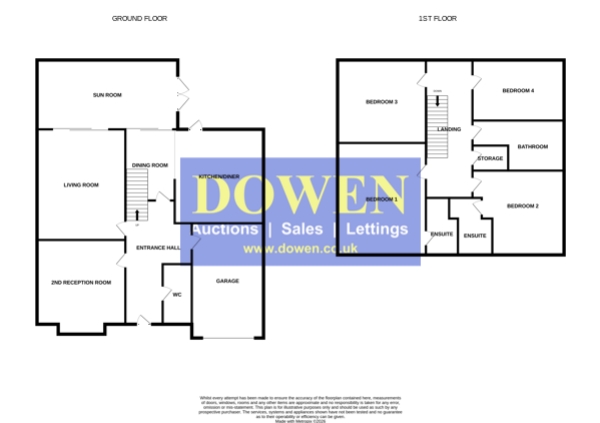 The first‑floor landing includes a useful storage cupboard and leads to four well‑proportioned double bedrooms, each benefitting from fitted wardrobes. Both bedroom one and bedroom two enjoy their own en‑suite facilities, offering convenience and privacy, while the remaining bedrooms are served by a stylish and modern three‑piece family bathroom suite.