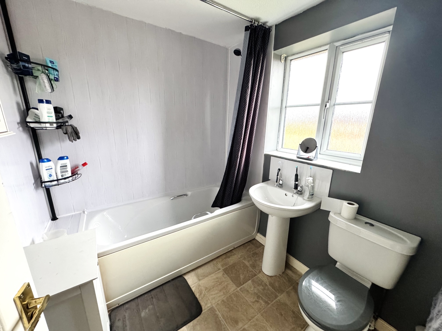Fitted with a 3 piece suite comprising of; Bath with overhead shower, pedestal wash hand basin, low level w/c, radiator, extractor fan, double glazed window to the front elevation