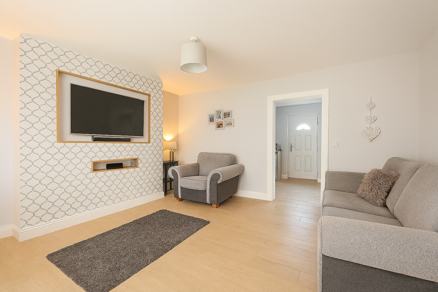 Inside, the accommodation is well‑proportioned and thoughtfully laid out. To the rear, a bright and sociable kitchen/diner provides the heart of the home — ideal for everyday family living or entertaining, with direct access to the rear garden. The two bedrooms offer comfortable, versatile space, while the overall layout benefits from a light and airy feel throughout.