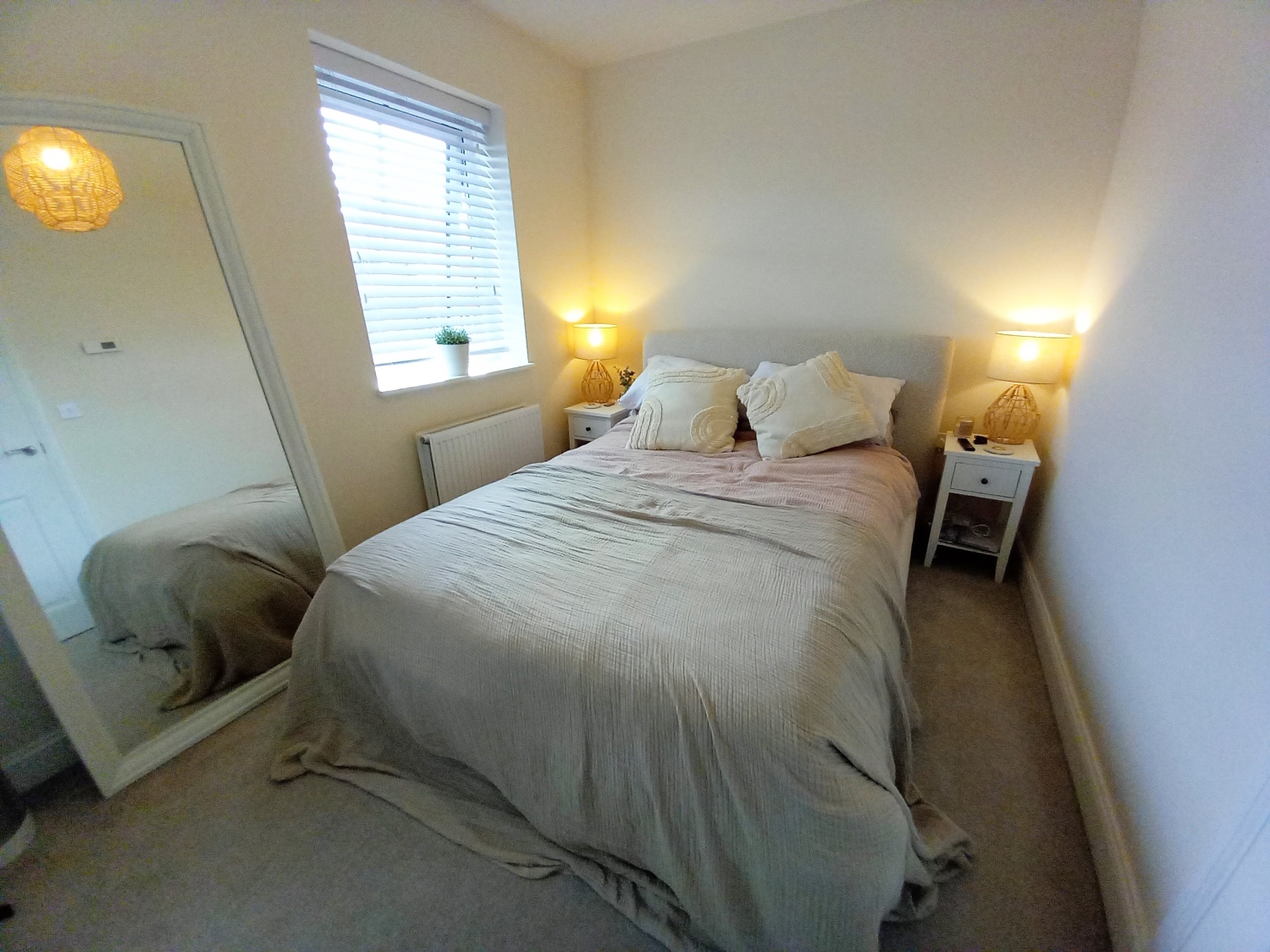 £136,995Modern two-bedroom end-of-terrace home, built in 2022 and benefitting from eight remaining years on the NHBC guarantee. The ground floor comprises an entrance hall, cloakroom/WC, and a stylish open-plan lounge, dining area, and kitchen. French doors open out onto the enclosed rear garden, creating a bright and sociable living space. Upstairs, the first floor offers two well-proportioned double bedrooms and a modern family bathroom. Externally, the rear garden features a lawn and patio area, ideal for outdoor entertaining. To the front, there is a block-paved driveway providing off-road parking. Situated in a quiet location less than one mile from the town centre, and within walking distance of Jubilee Park. An ideal purchase for first-time buyers. Viewing is highly recommended.
