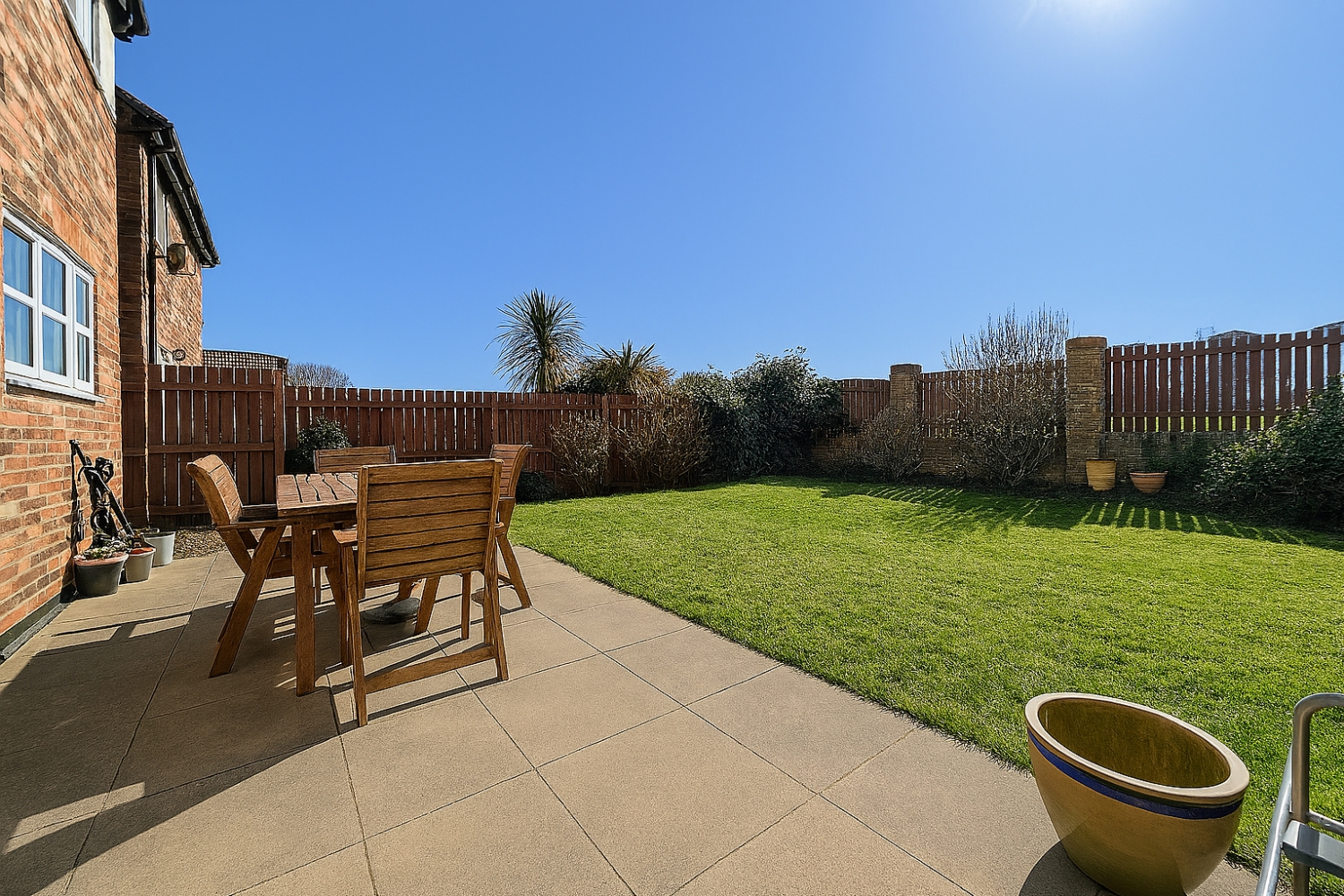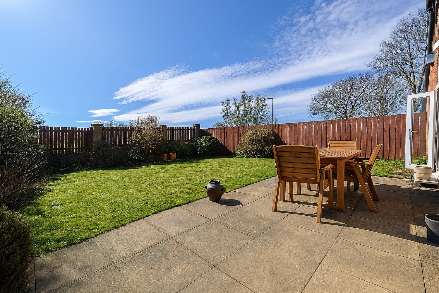 Inside, the layout is all about family connection. The spacious lounge-diner is the sort of room that adapts to every chapter of family living — space for big sofas, a generous dining table, toys, celebrations and everything in between. On brighter days, French doors open straight onto the lawned rear garden, perfect for letting little ones run in and out or for hosting relaxed summer get‑togethers. With the green beyond the fence, the garden feels open and uplifting, a lovely backdrop to daily life.