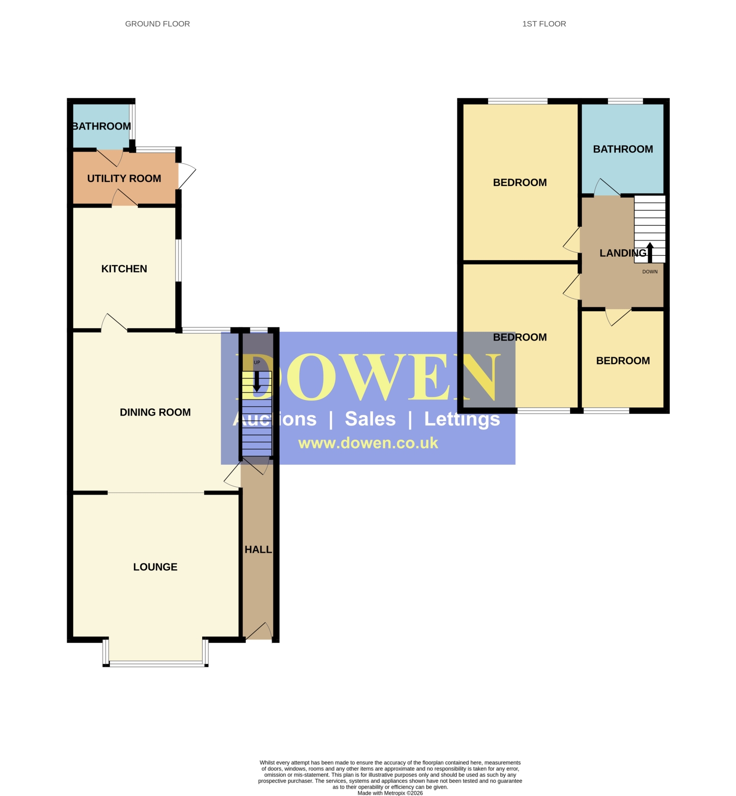 Upstairs, the first floor hosts two comfortable double bedrooms and a well‑proportioned single bedroom, along with a modern family bathroom featuring a bath with a mains‑fed overhead shower.