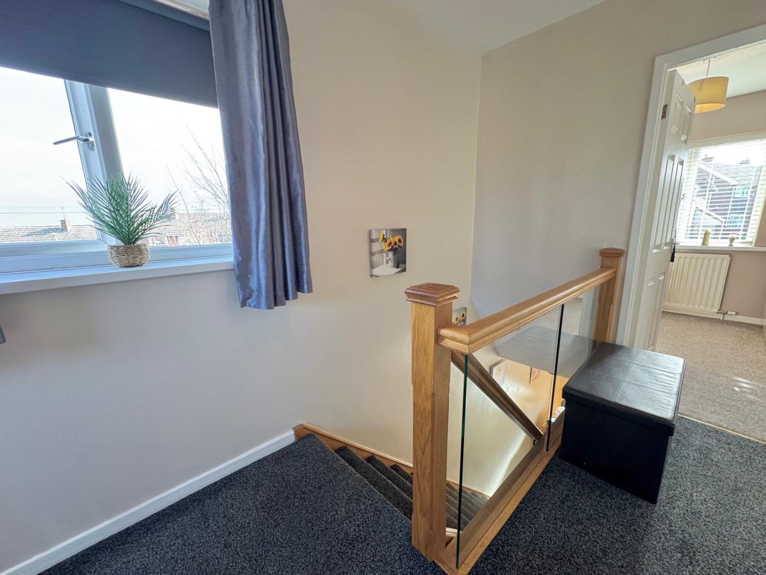 The first floor comprises a bright landing with window allowing for a sunny aspect, two well‑proportioned double bedrooms, a further single bedroom, and a modern fitted bathroom suite.