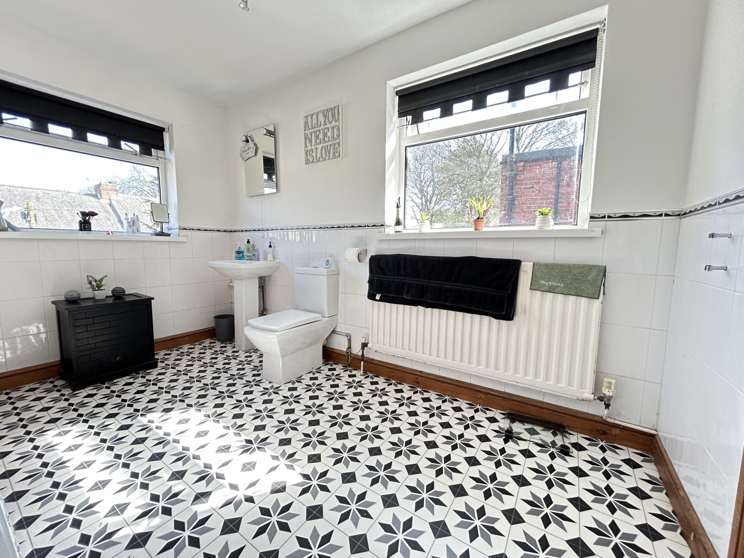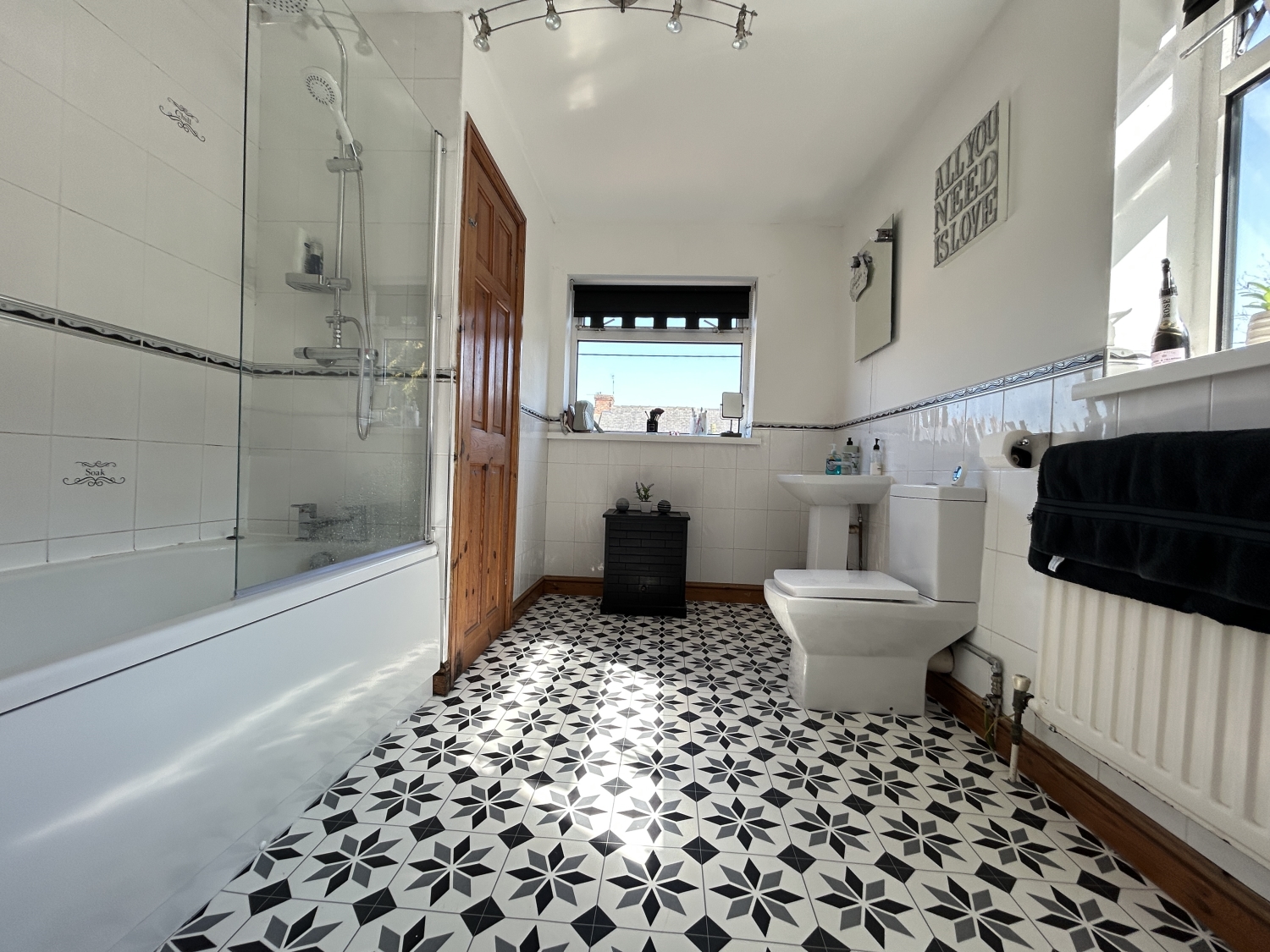 To the first floor, a splendid split-level landing grants access to three well-proportioned bedrooms. Two of the bedrooms are generous double rooms. Completing the first floor accommodation is a luxurious, larger-than-average family bathroom fitted with a white suite, featuring a shower over the bath and windows to both the rear and side aspect, allowing an abundance of natural light to enhance the space.